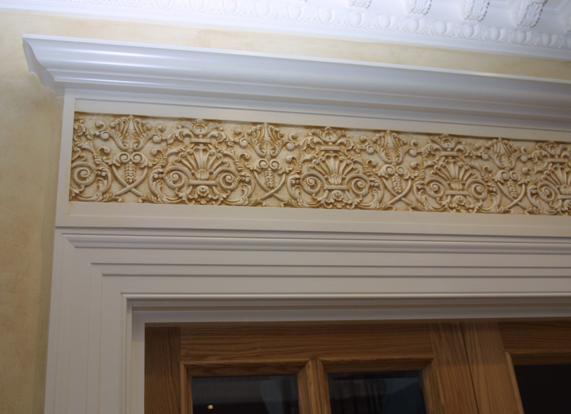 All the doors were natural oak which contrasted beautifully with the carved entablature above.
