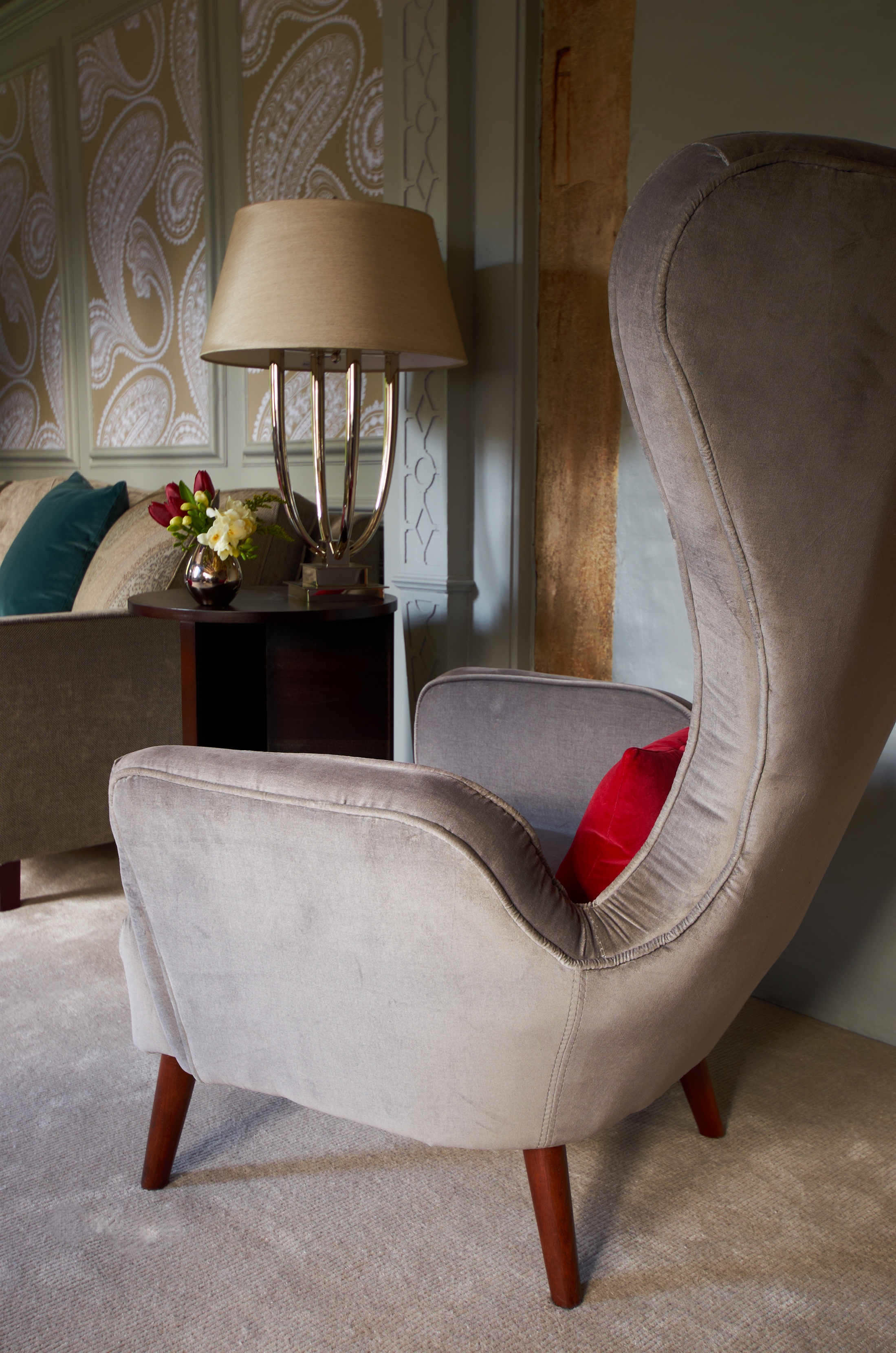 Lindsey designed two function rooms in this listed period manor house in Surrey. Both rooms were stripped back to their bare bones before being French polished and decorated to preserve the wooden panels. Many pieces of furniture are bespoke to ensure their size and finish sit harmoniously within the space. Lindsey is currently working with the clients on the second phase of the project, an extension and renovation of further rooms.