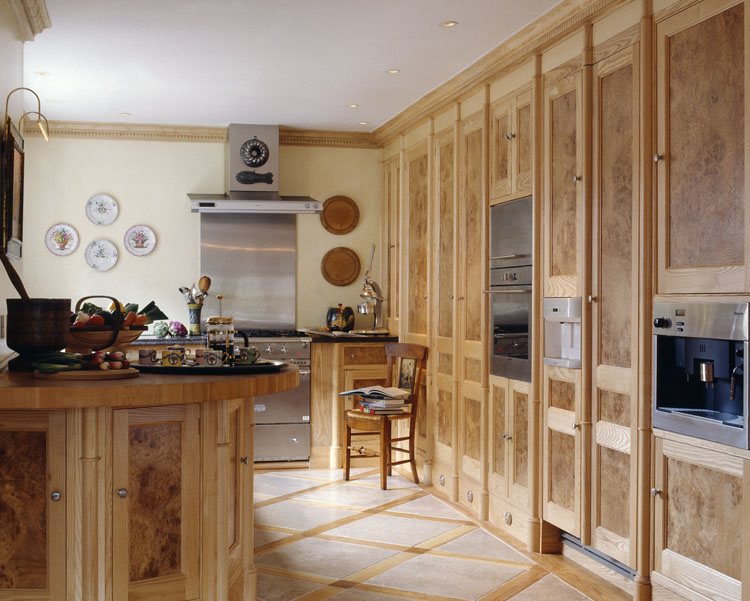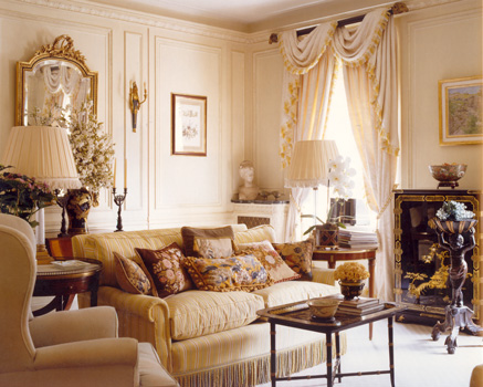 A few years ago we decorated an apartment in this Grade II Listed building. Subsequently, our client bought the flat above. Their brief was to join the two flats to make a beautiful home, using workmanship of the highest quality. Fine plaster in the cream/yellow Drawing Room set the theme of international elegance, and the walls of the newly formed Hall and Staircase were hand-stencilled. A comfortable Library was designed – with concealed hi-tech equipment - panelled in fruitwood and with a fine inlaid floor. An oak and limestone floor was laid in the new Kitchen /Dining Room. Cecilia sourced all the art work and furniture.