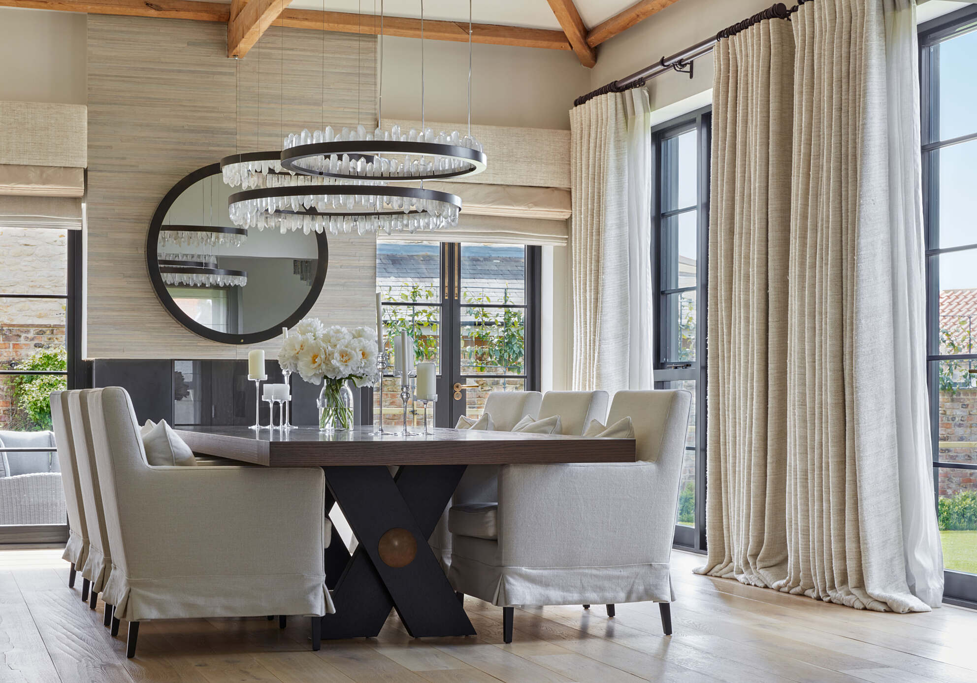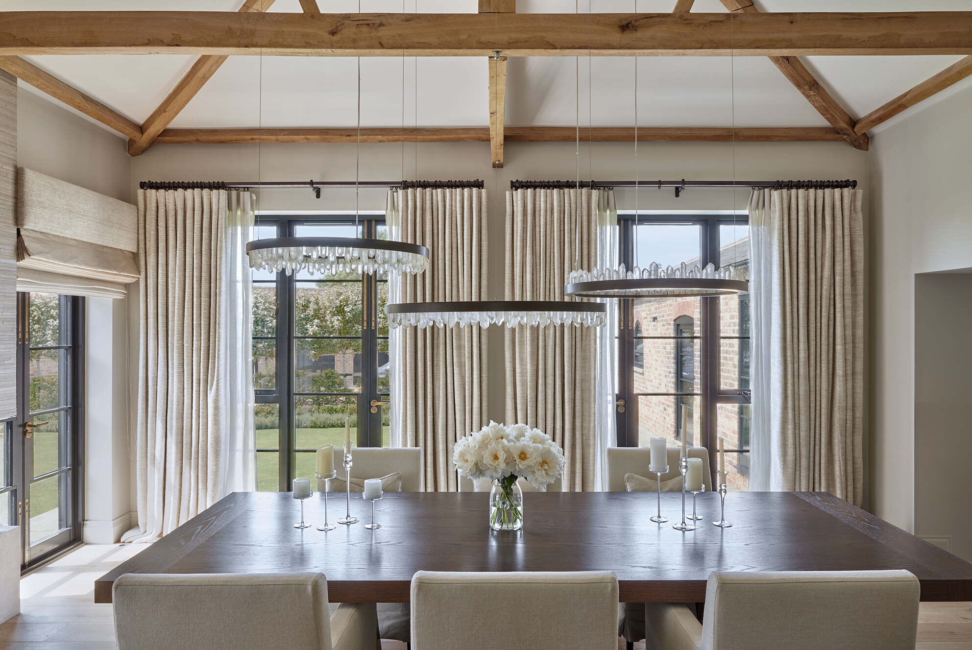 In the heart of pastoral beauty, Two:D Limited embarked on a captivating journey to transform a converted cow barn into a haven of glamorous country living. Our expert touch was enlisted to supply and install a curated selection of window treatments that would seamlessly blend rustic charm with modern elegance.