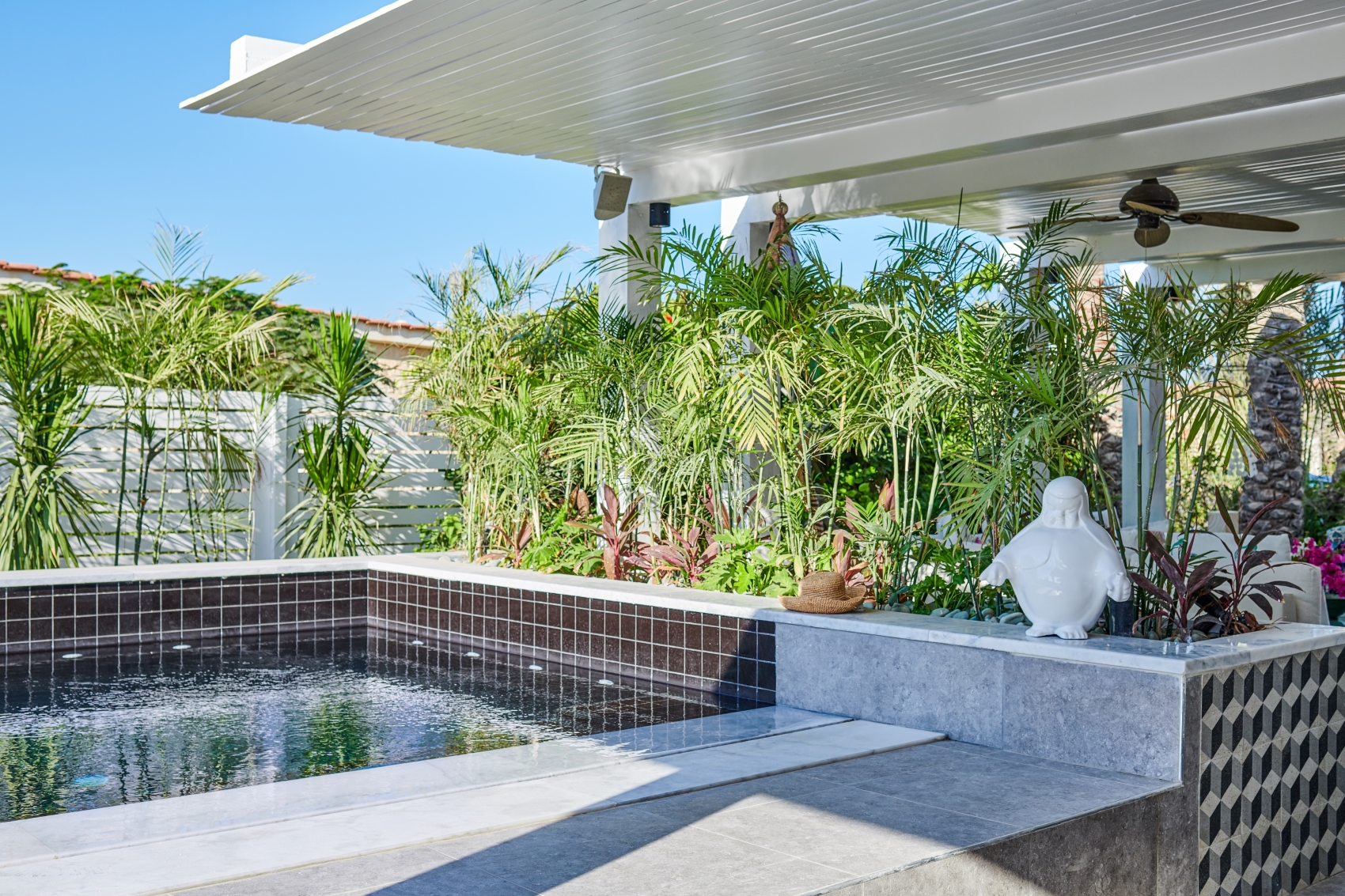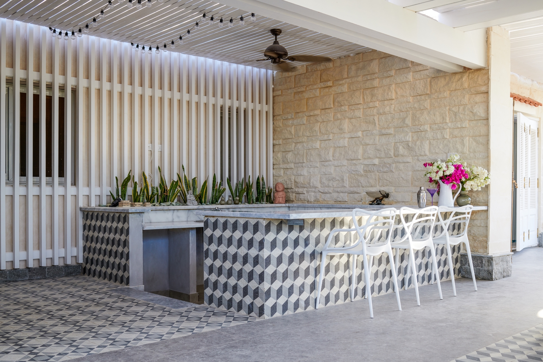 In this summer home, we made sure to make the most of the gorgeous weather with an outdoor dining room, sunken bar, comfortable furniture and an indoor kitchen built in proximity to the outdoor area for ease of operations. The house is divided into six bedrooms with en-suite bathrooms and ample communal space so there is enough outdoor space to be social or just sit back quietly with a book.