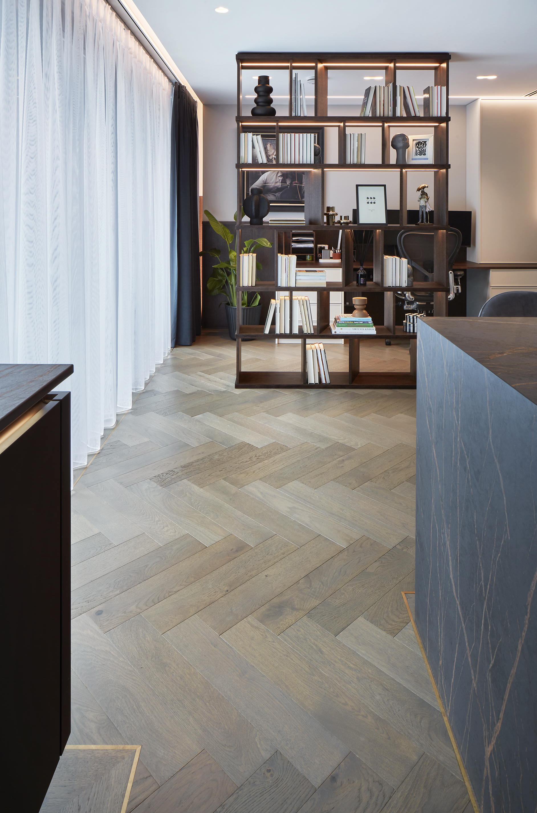 Havwoods Product Used: HW12216 Rothbury Herringbone, HW12116 Rothbury 1-Strip, HW236103T Ebony Ondato M22 Sheet