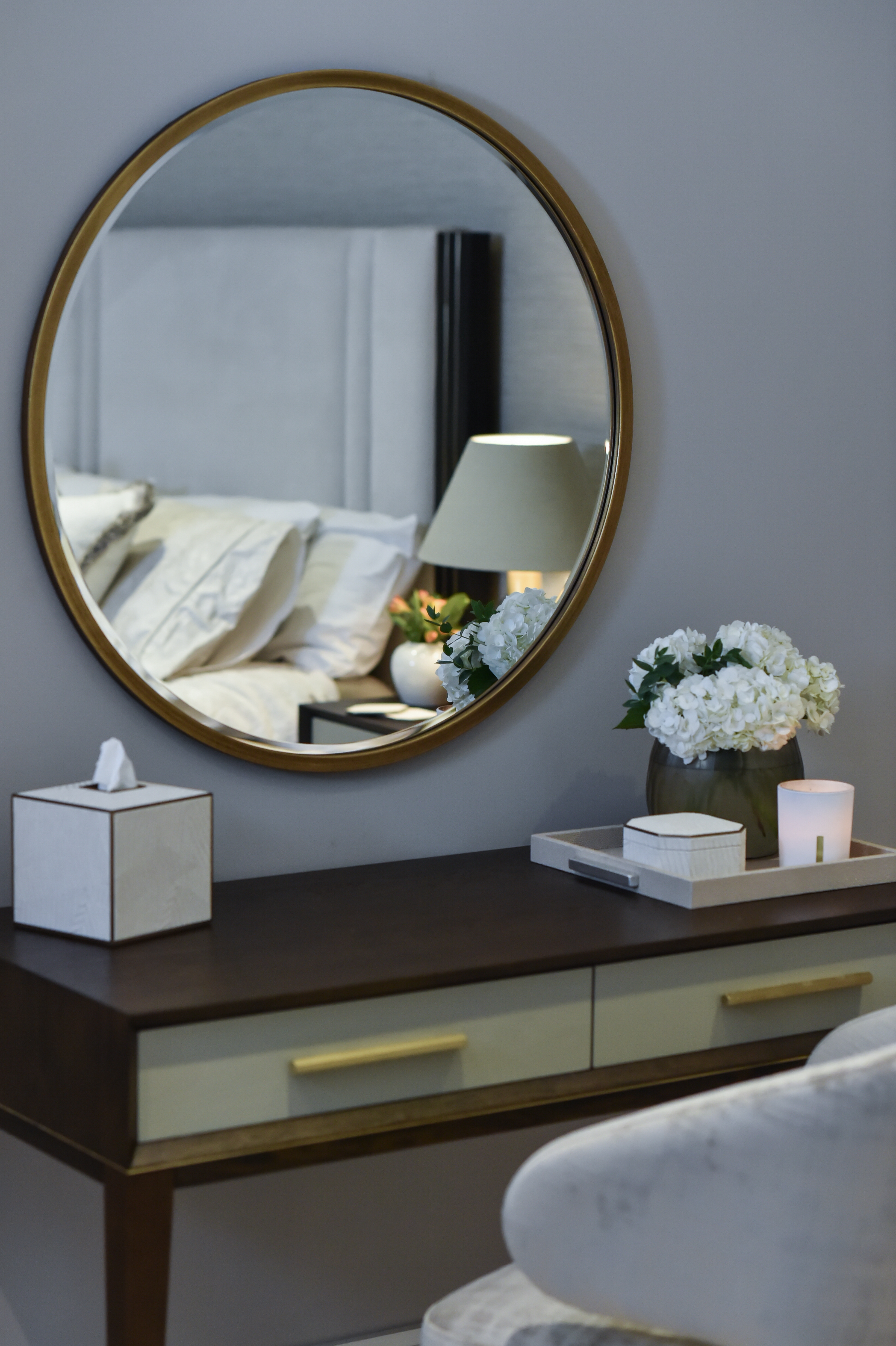 To complete the room, we added a dressing table that’s both practical and beautiful, making everyday routines feel special. Every element works together to create a personal, practical, and polished bedroom.