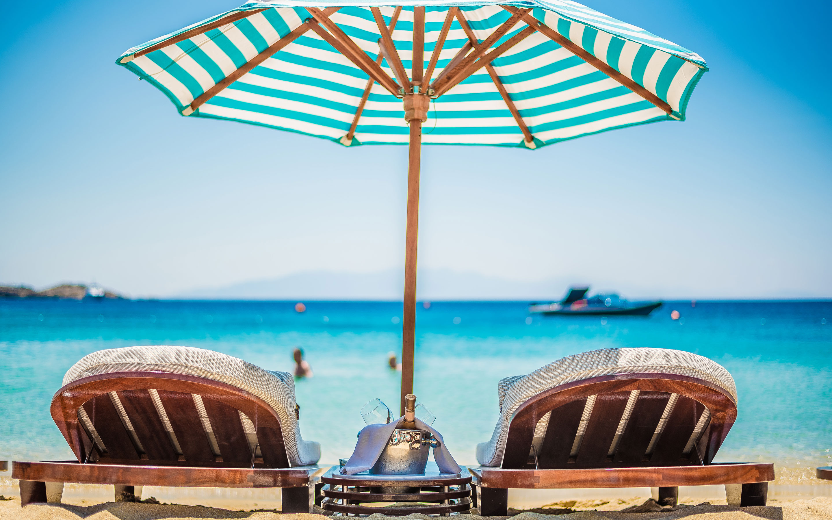 This included sunloungers with Loro Piana outdoor fabric cushions, Tuuci parasols with custom turquoise striped Sunbrella canopy, Alessi ice buckets and Nammos-branded Designers Guild beach towels for the ultimate beach experience