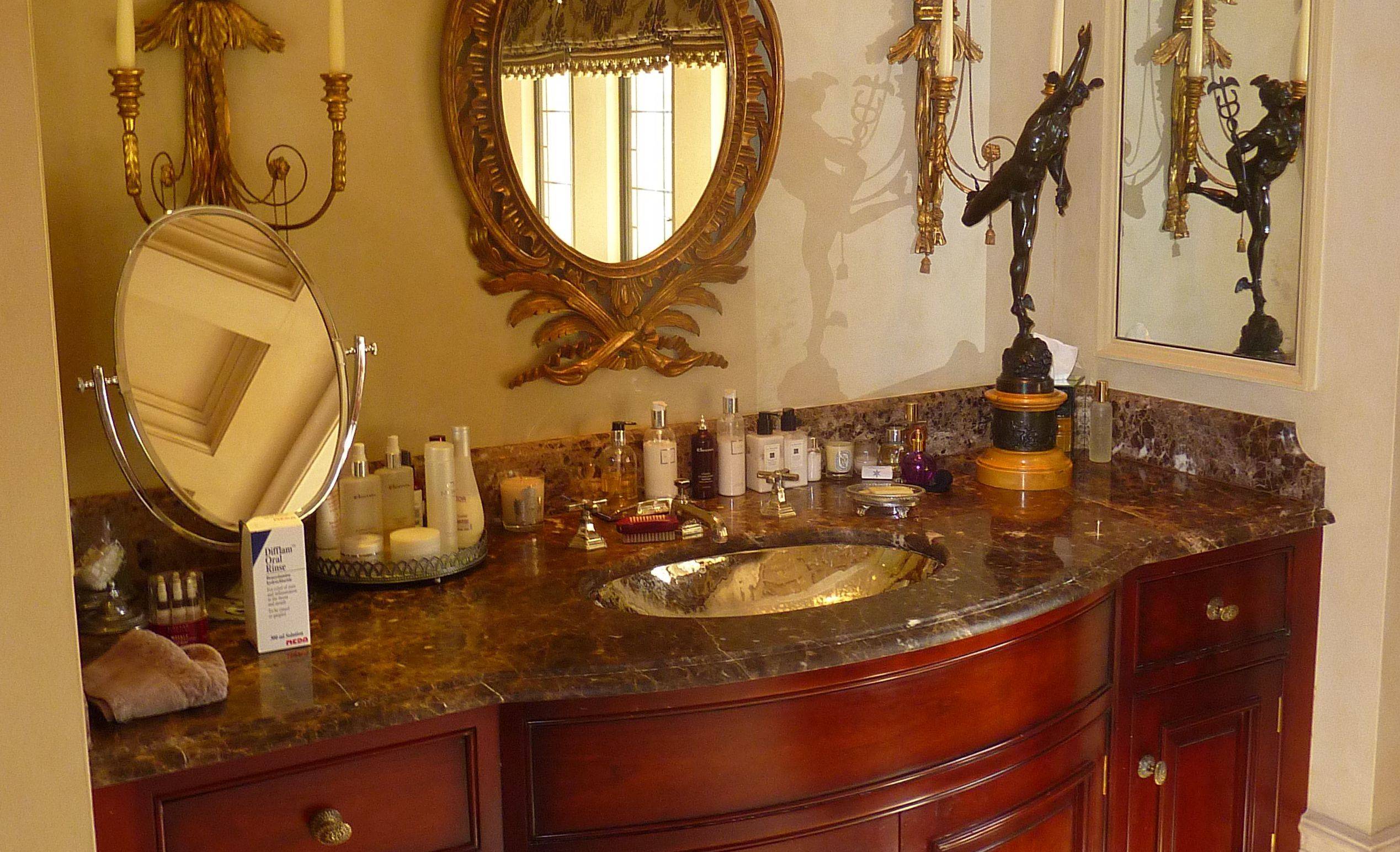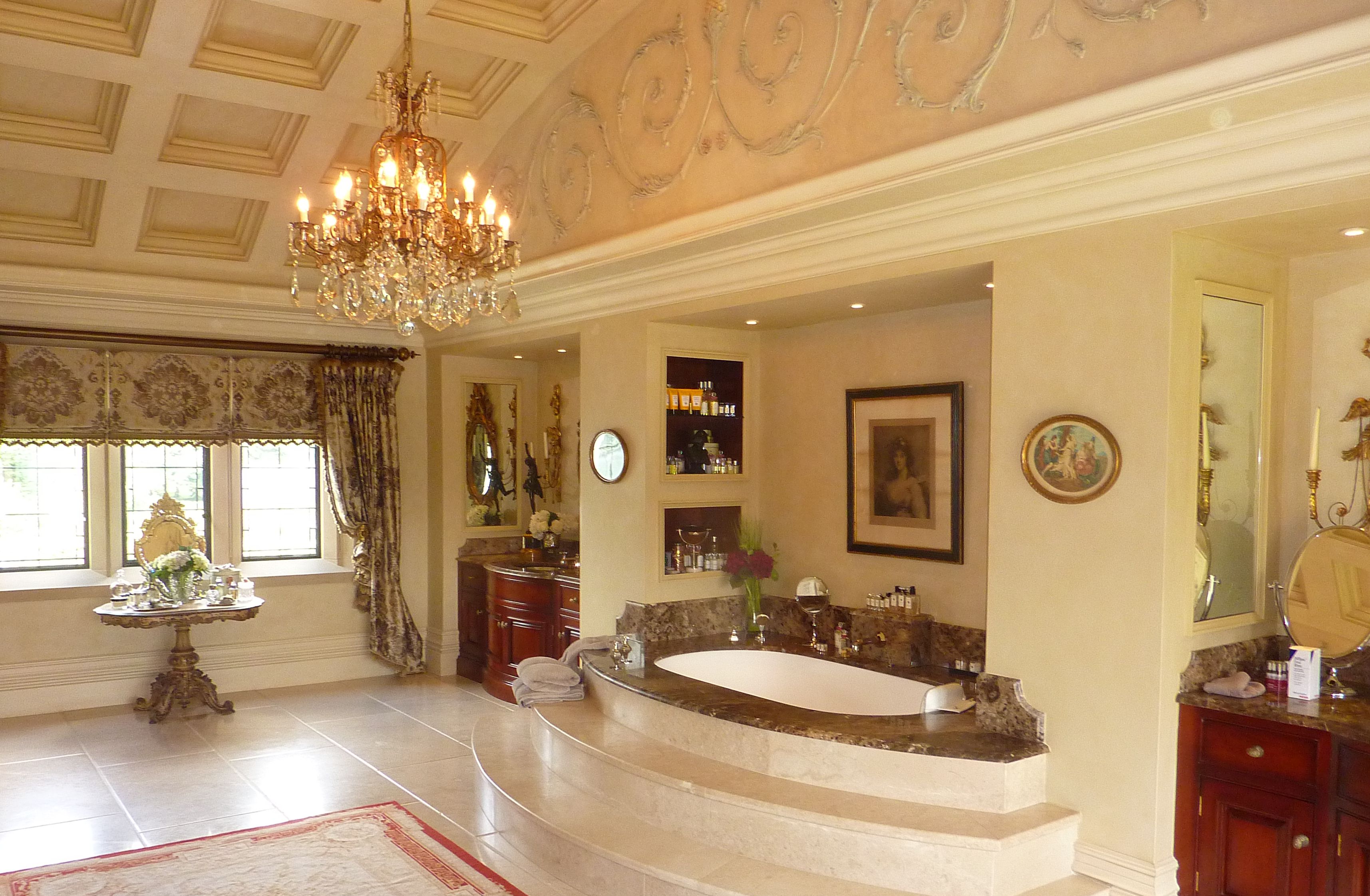 The floor is under heated French limestone and this contrasts withe the Emperador marble used for the bath deck and vanity tops.