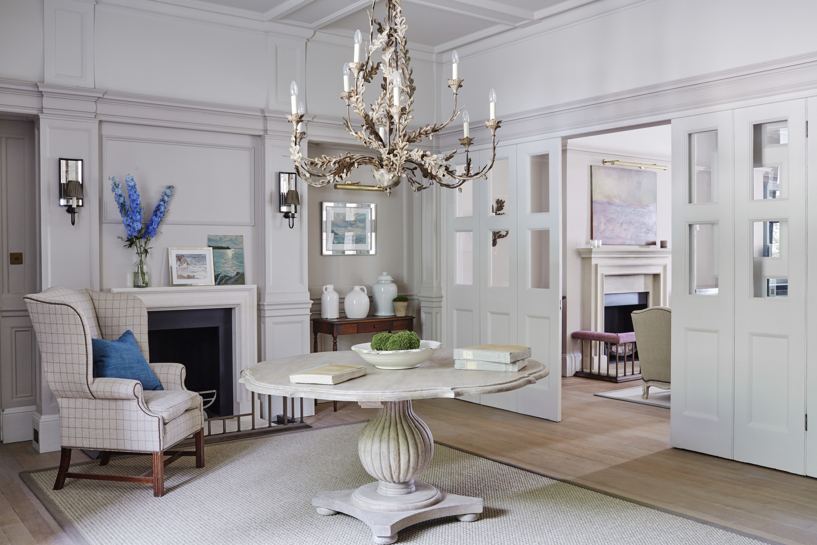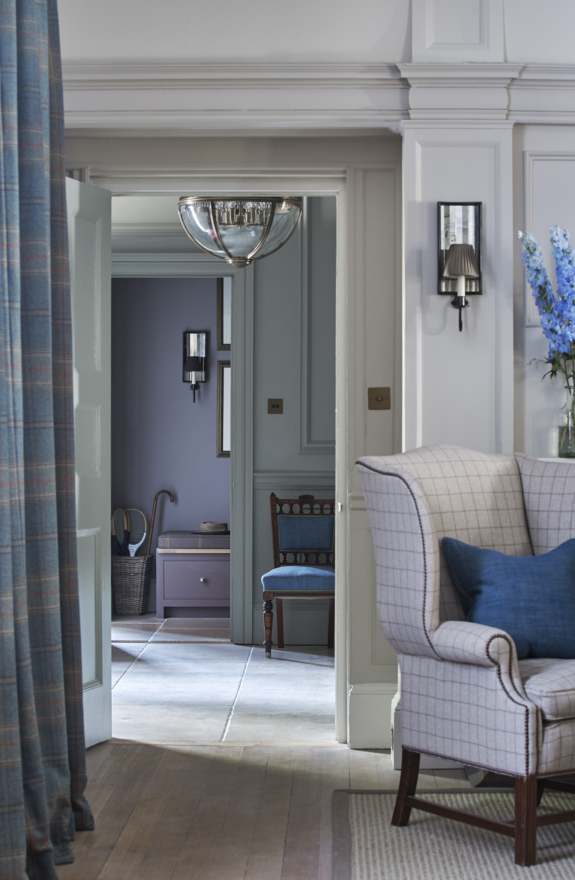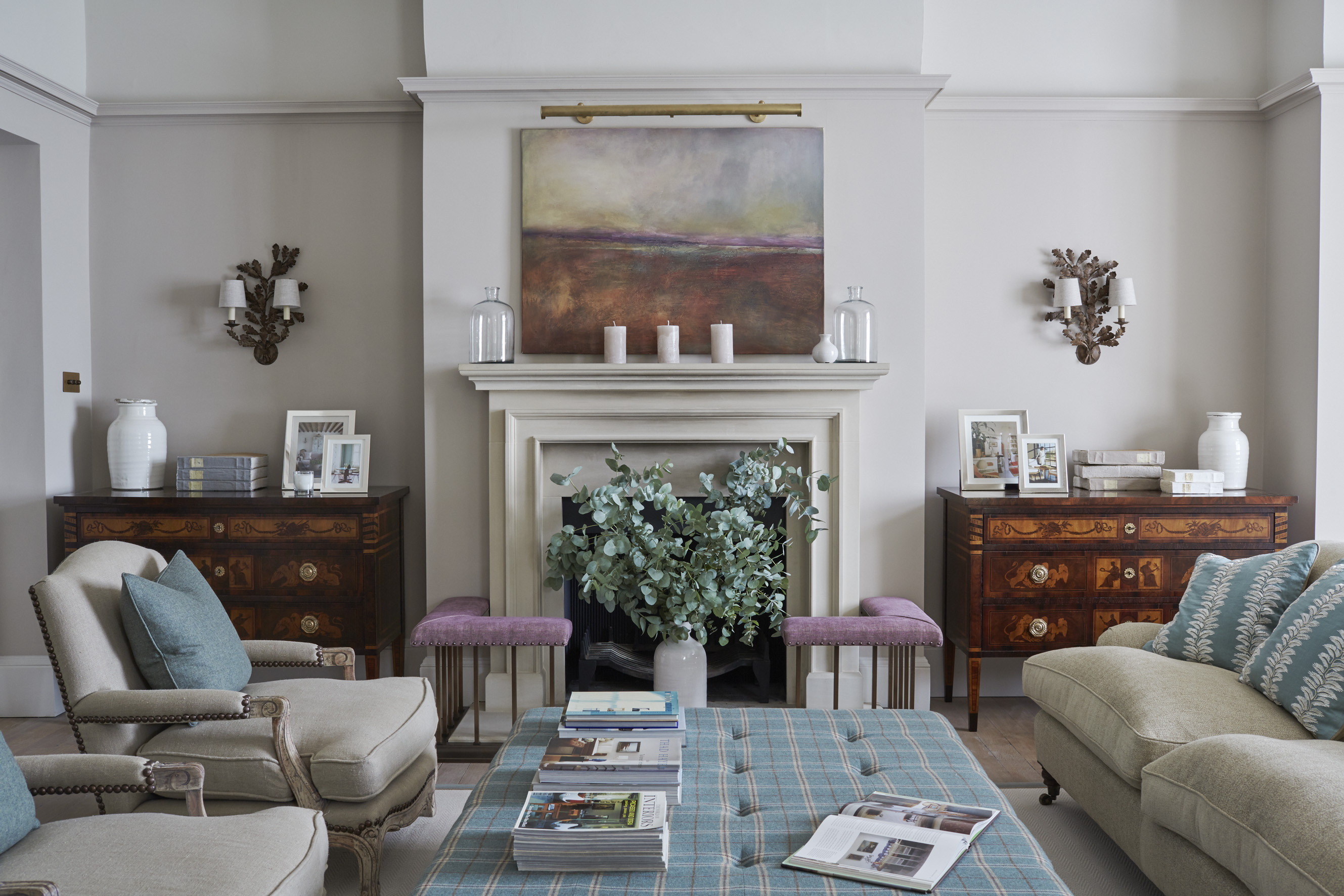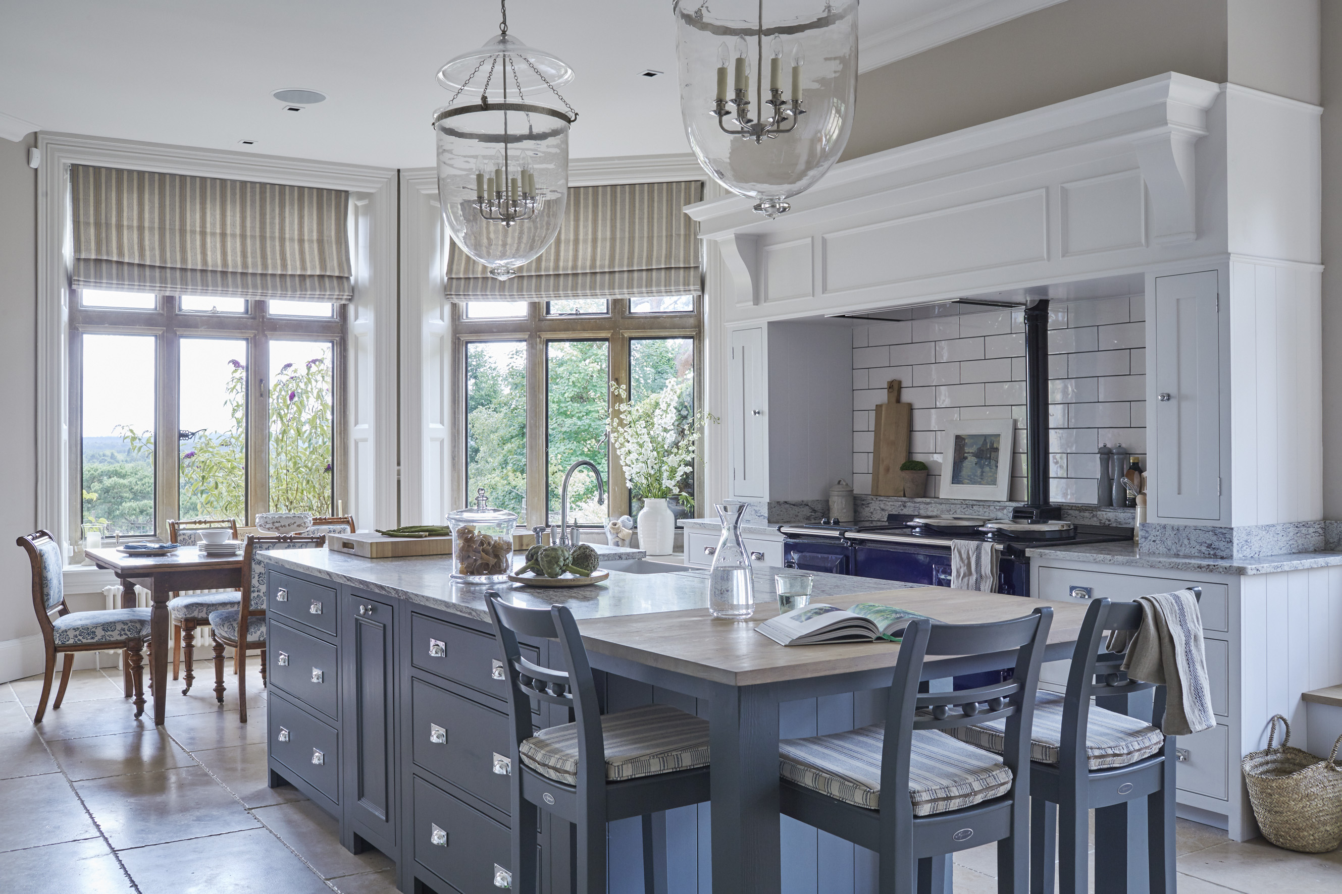 The design scheme is a fresh take on English countryside style, with a palette of off whites and dove greys forming a calming backdrop for dramatic splashes of navy blue and teal. Bespoke pieces were especially crafted to sit alongside our clients’ collection of art, antiques and lovingly collected furniture.