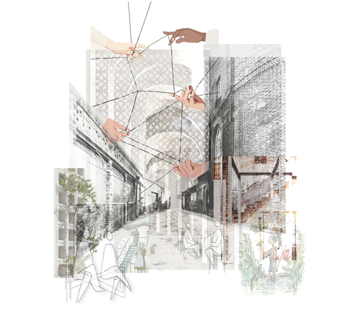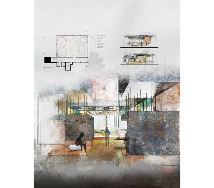 The judges commend the presentation for its artistic yet architectural approach, effectively communicating design ideas while engaging the viewer's imagination. The use of colour and Photoshop actions enhances the concept, evoking an emotionally intelligent design. The digital media is applied creatively, combining distinctive and arresting textures and layers with a watercolour-like looseness, capturing the atmosphere and complexity of the concept without being overly literal.