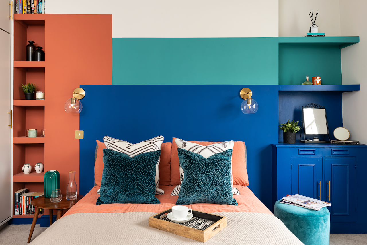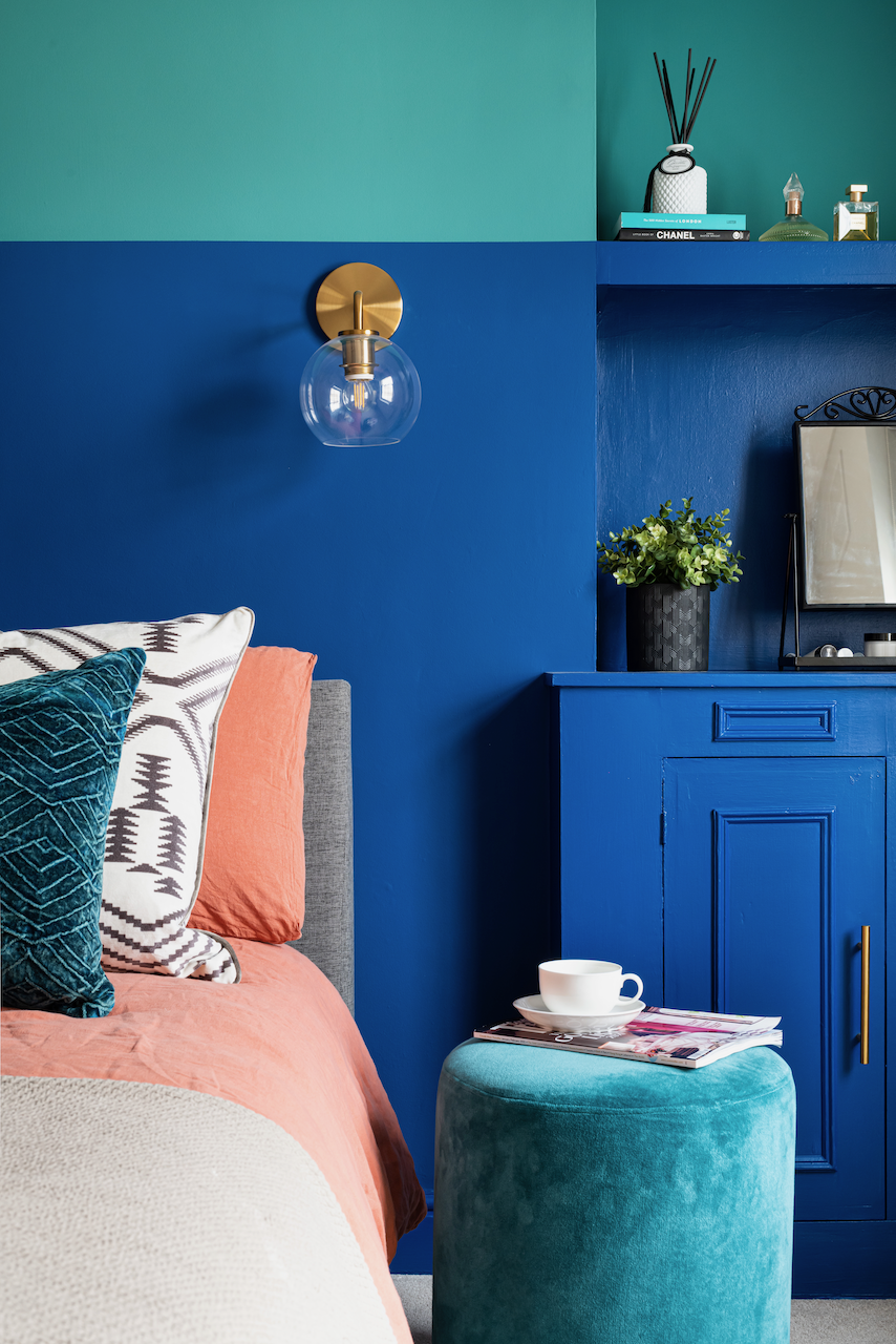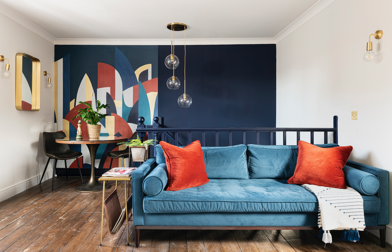 We were appraoched to design and install a mid-century inspired design scheme for a couple moving into this apartment. They wanted a colourful design with impact. The timeline was was tight for the project with only 6 weeks to complete and with a limited budget. The apartment was drap and dated, having been rented out for many years. We transformed the space to the client's brief, in time and within their budget. The clients were delighted with the transformation.