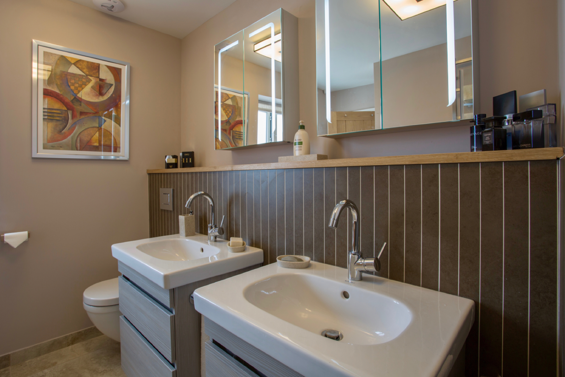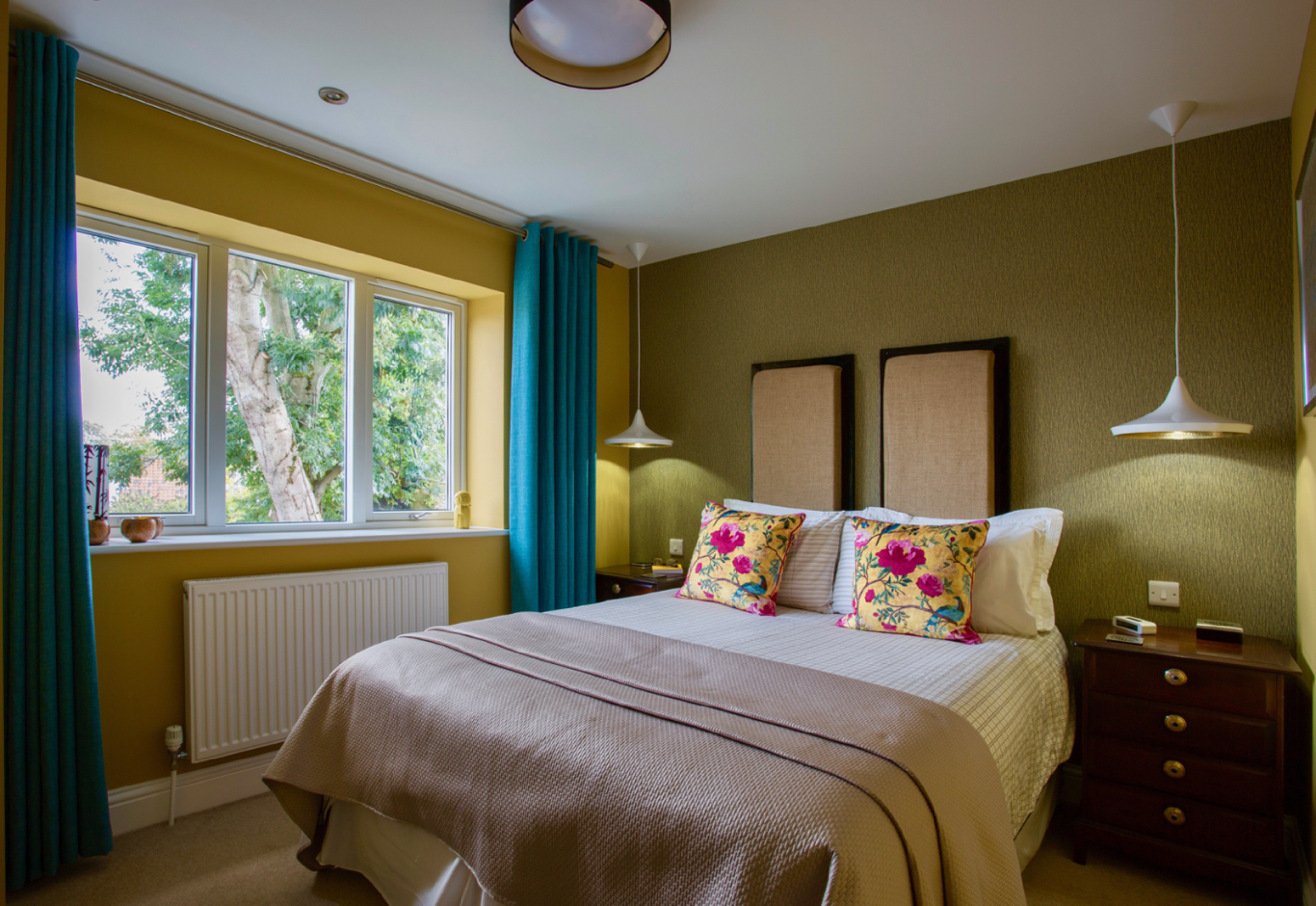 The client brief was for a boutique style master bedroom and en-suite as this was their main bedroom, plus two additional smart guest bedrooms and family bathroom. Plus a sizeable office, come library on the top floor. The house was designed with lots of light and windows, so we worked with this particularly on the ground floor to give a great entertaining space, another request especially kitchen design and function, but also a cosy living space. The addition of the ground floor shower room and sofa bed in this space was for when elderly relatives came to stay.