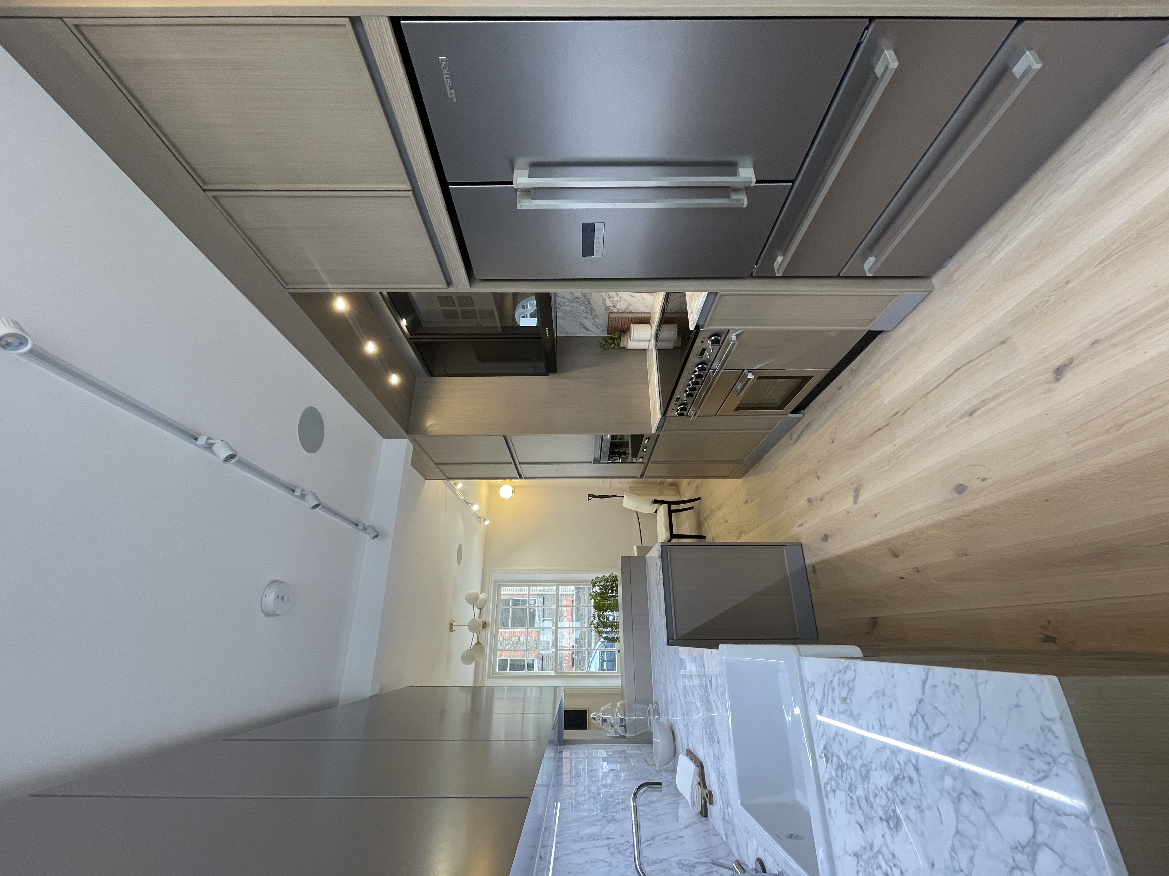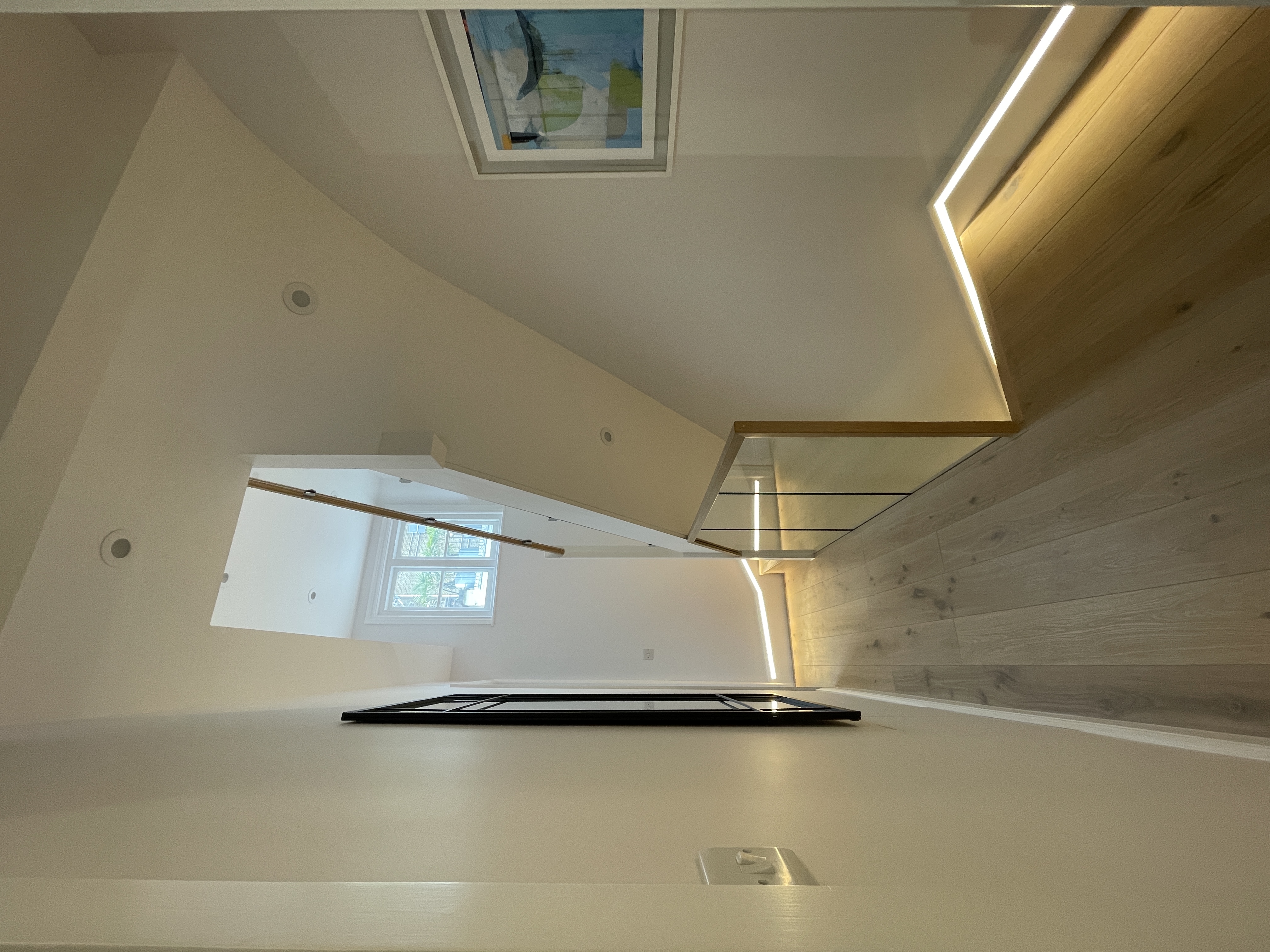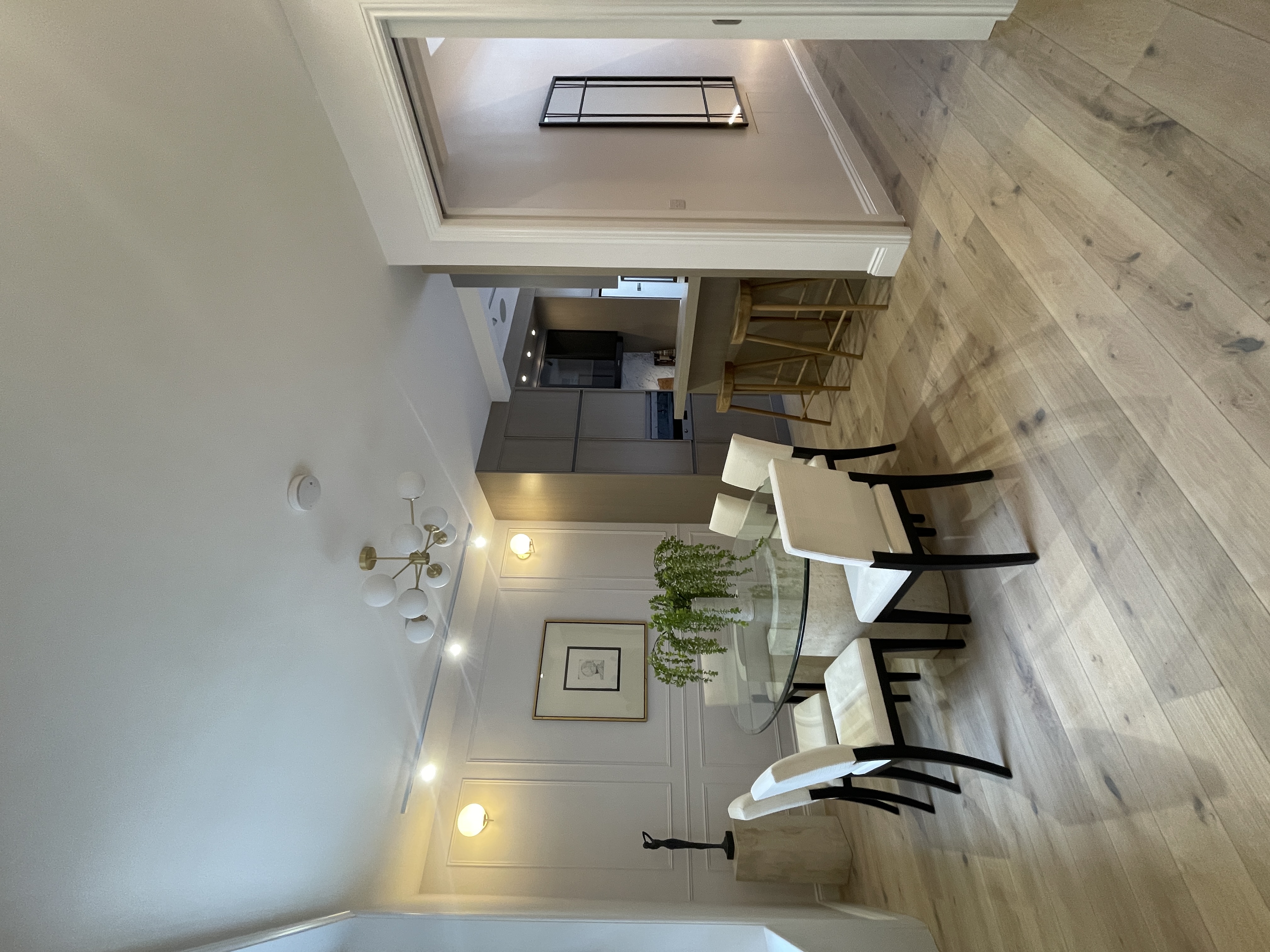 The Notting Hill project centered on enhancing a three-story while respecting the client’s request to retain some existing furniture and integrate additional storage solutions. To achieve this, we designed a new, all-veneer kitchen for the open-plan layout, creating a modern and functional space that aligns with the flat's aesthetic.