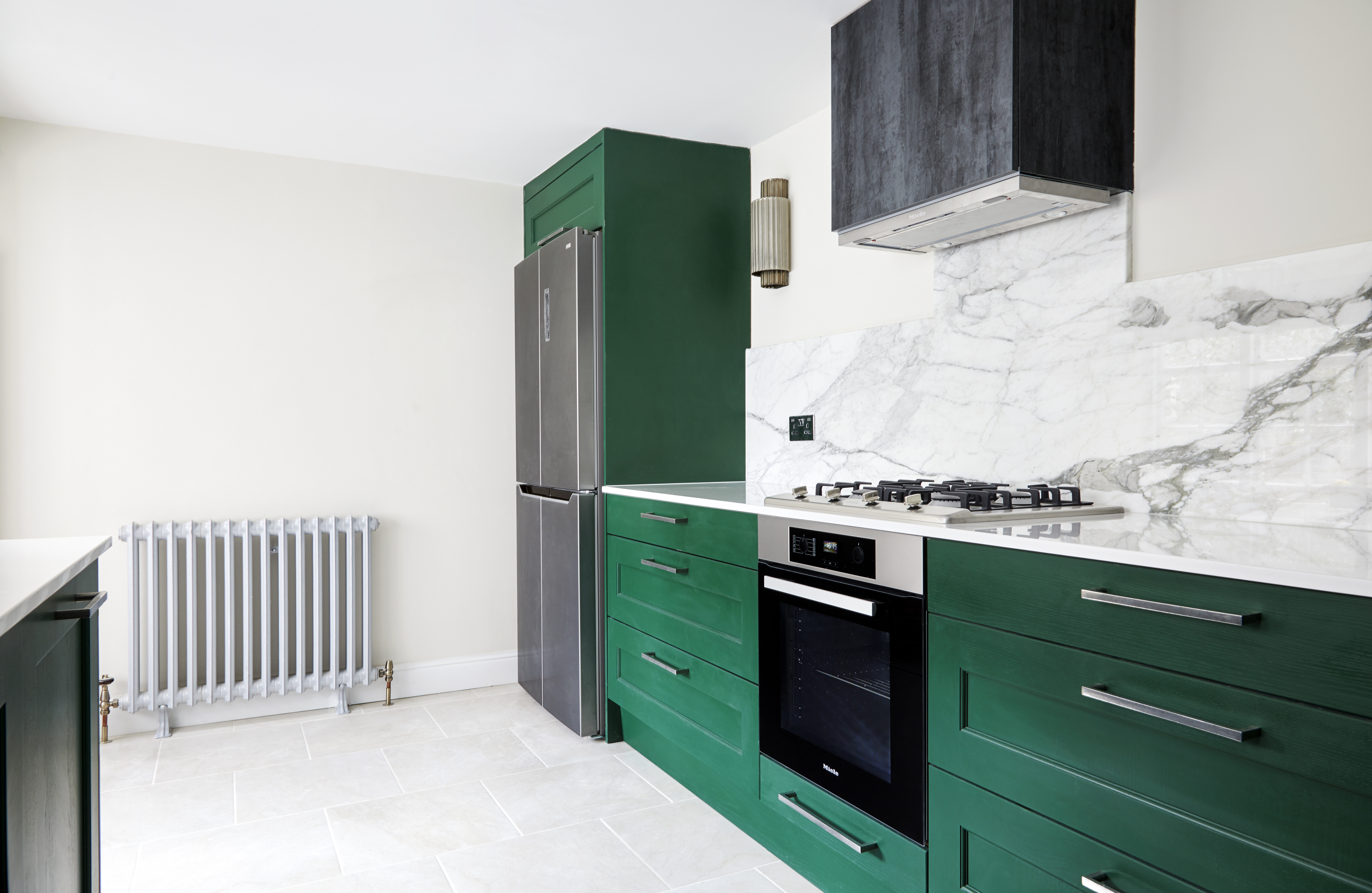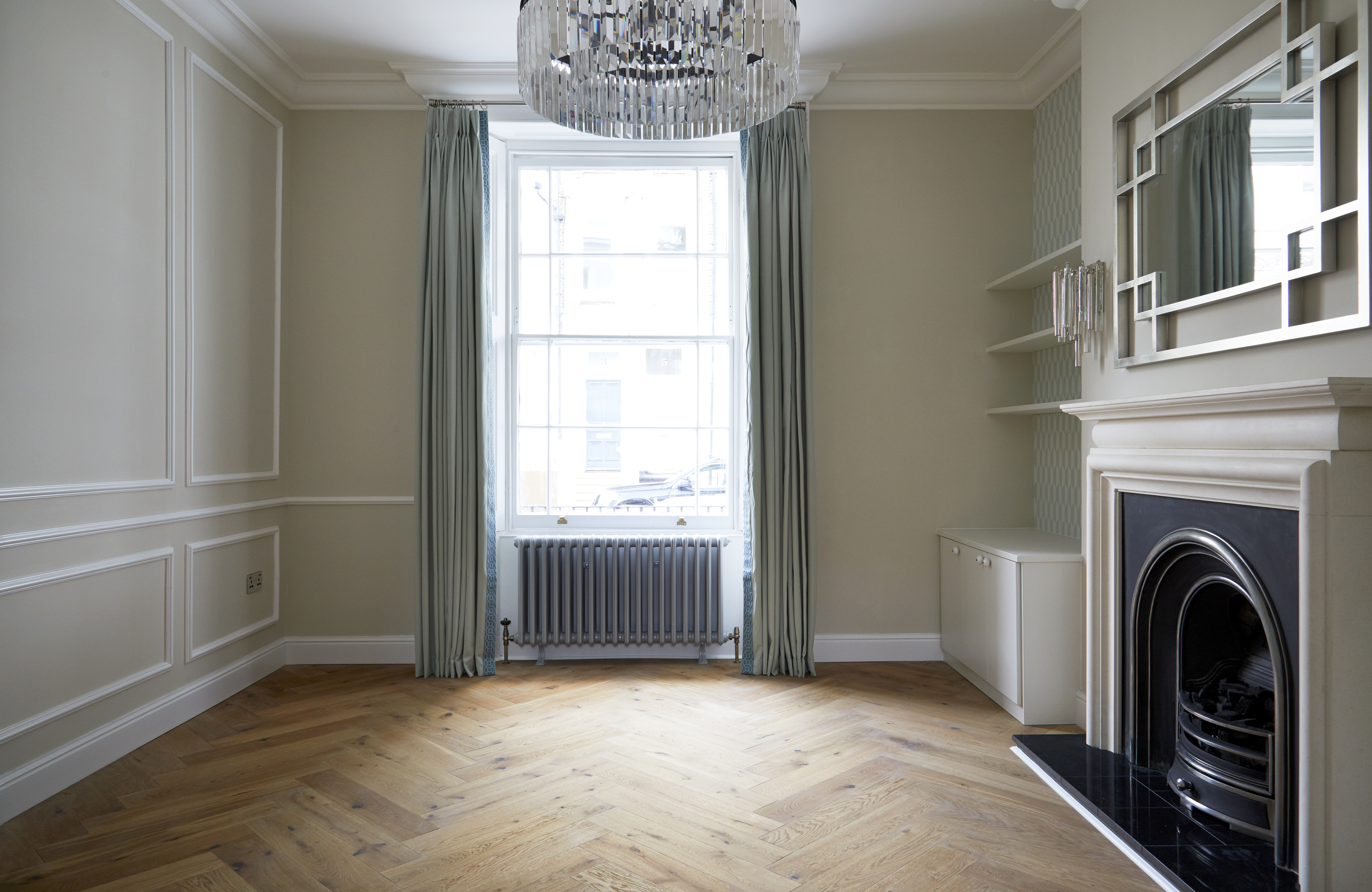 Renovation of a Kensington four-story townhouse into a rentable home with a separate flat in the lower level. This renovation was done with an emphasis on maximising investment through durable materials and luxury styling without the luxury price. The full property has a playful and glamorous air while remaining distinctly English. Architectural detailing will be added to transform a featureless interior in a manner that will not date the house over time. The kitchens in both units are bespoke while maintaining their practicality. Storage has been maximised across the property.