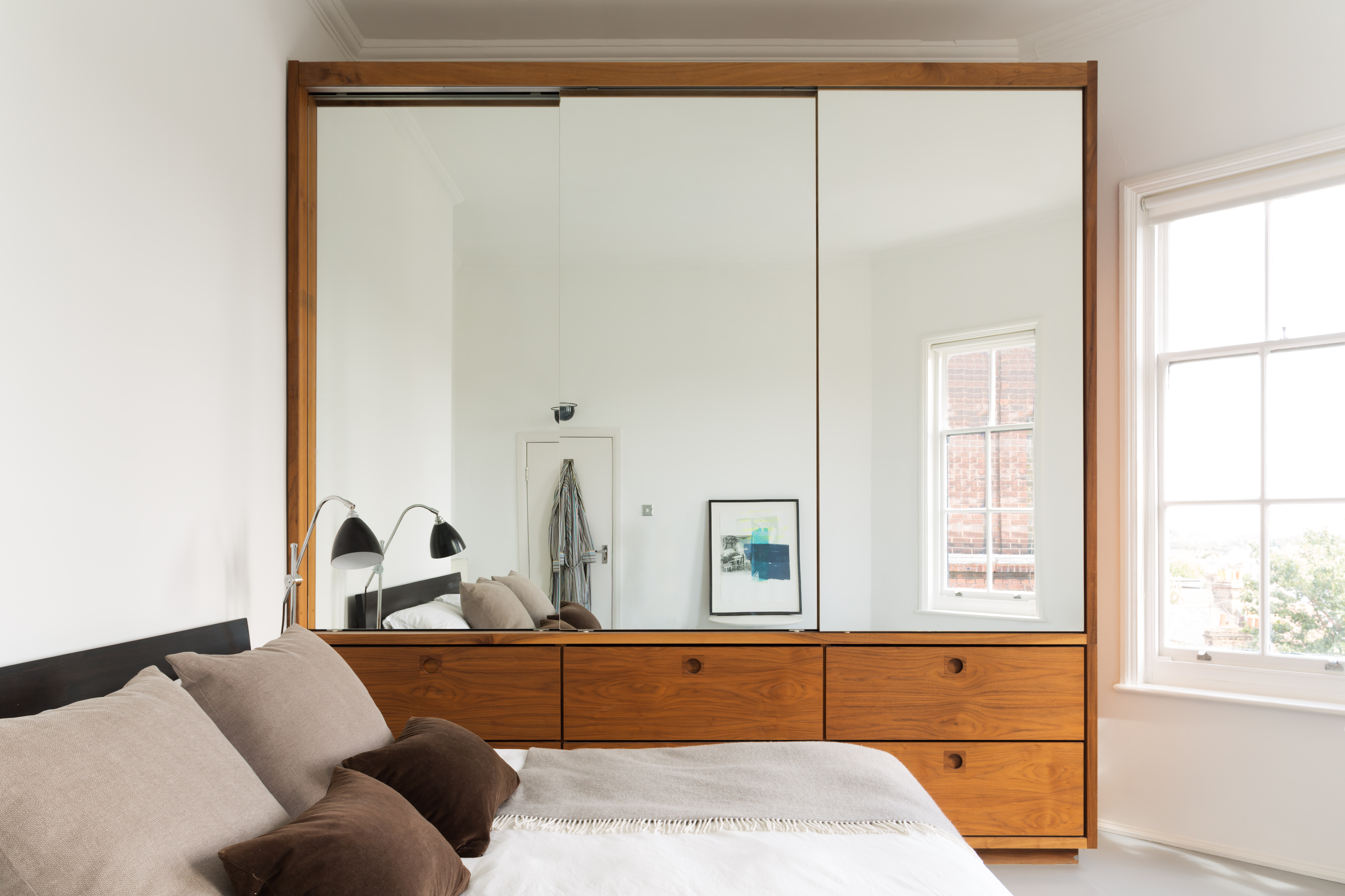 The client was a creative personality from the restaurant business who loves cooking! The flat was a conversion in an old school and included a mezzanine floor in what was formerly a large, double-height Victorian schoolroom. He wanted to establish a more liveable space and in particular incorporate a dining area in which to entertain. Keen on a modern, uncluttered feel the client needed the work to be done within a strict time-frame and tight budget.