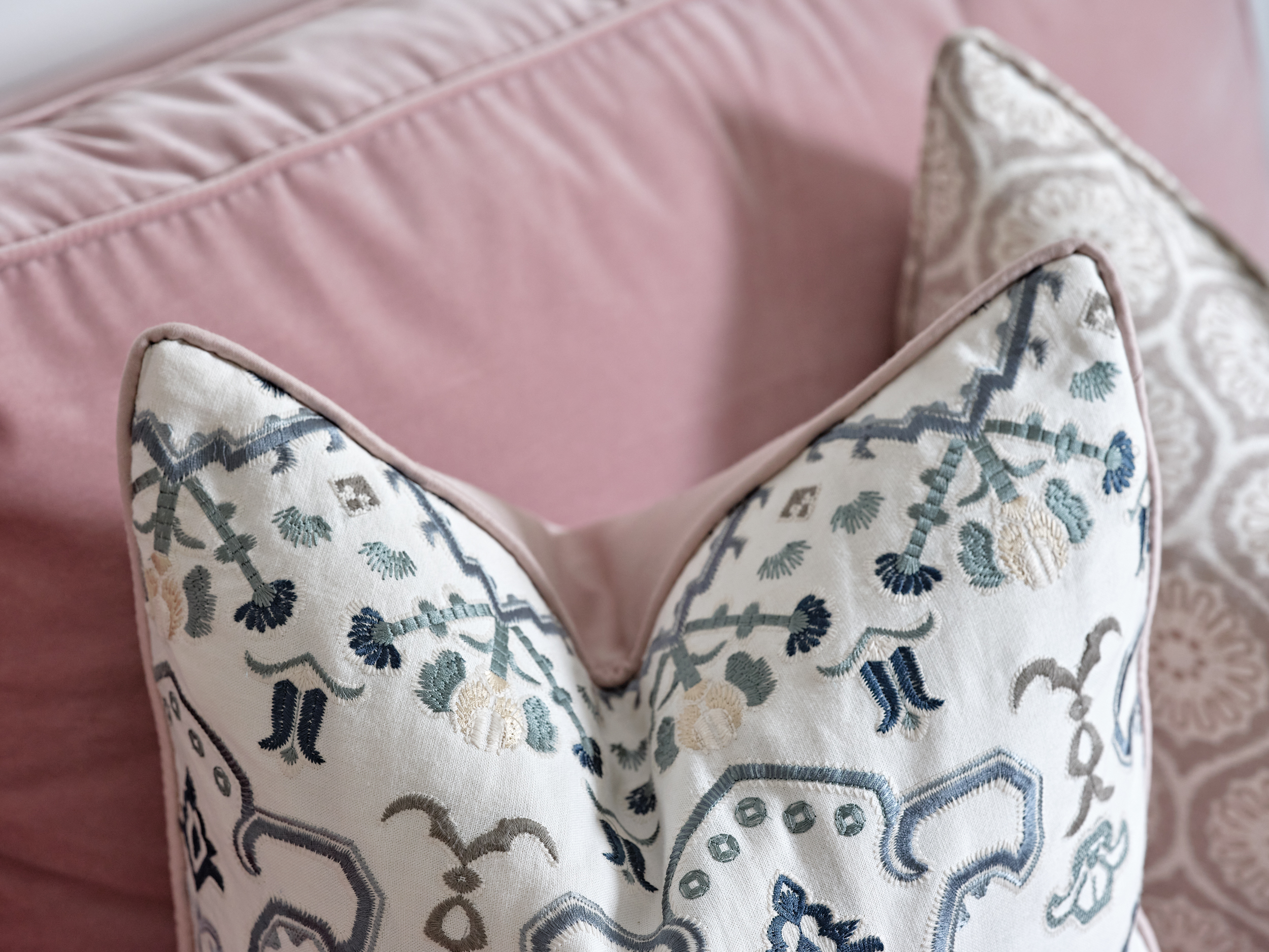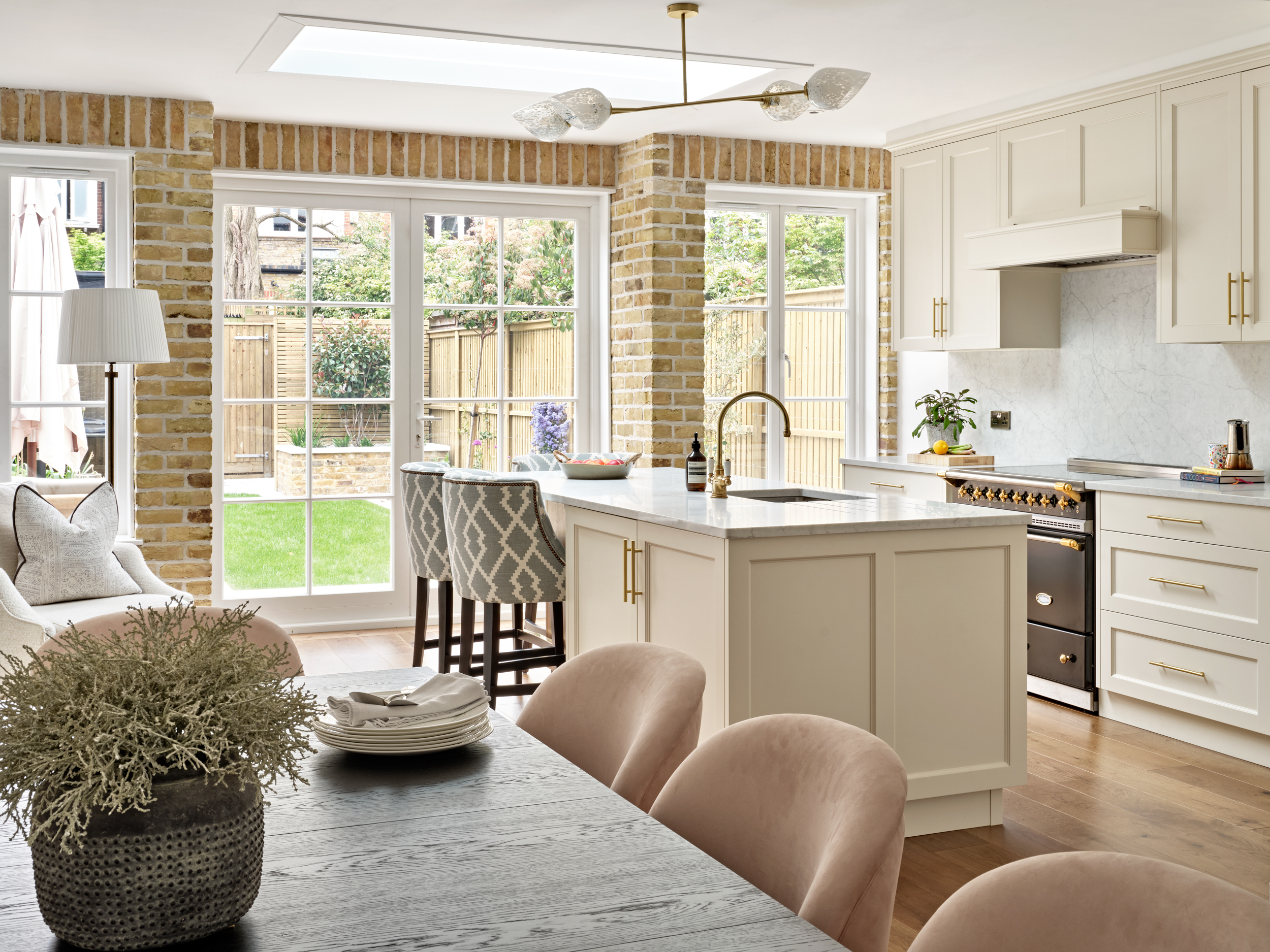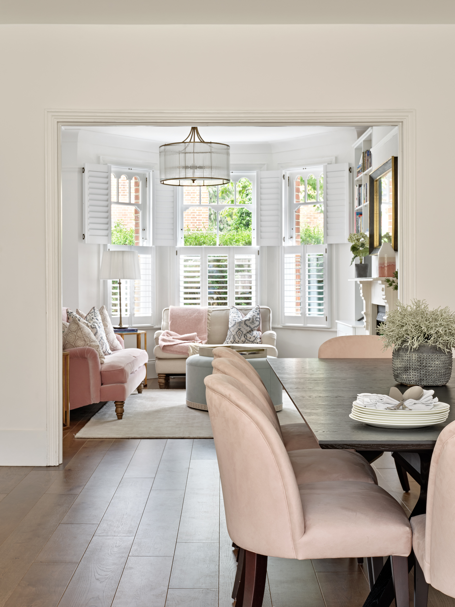 Our Lockdown project! We created a rear extension and opened up the Ground Floor to make a light and bright family home. A warm neutral palette with soft pinks and blues. And a very hard working downstairs loo come utility room.