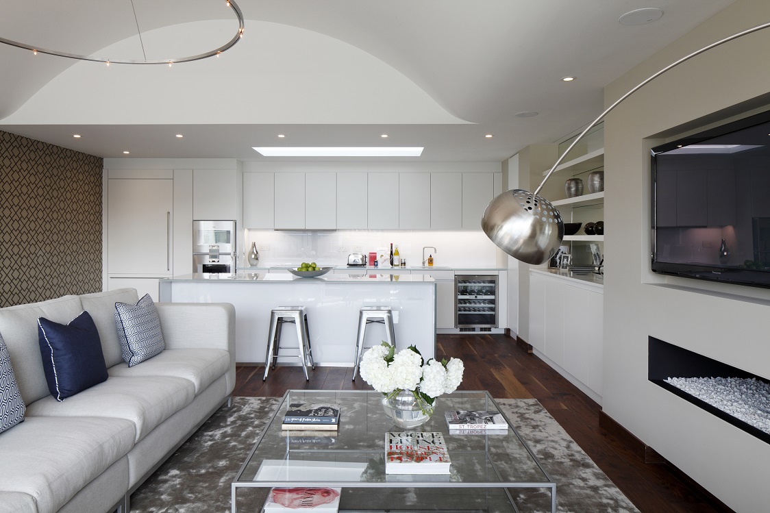 This 2,500 sq ft penthouse in Central London was transformed from an office into a £5 million home in just 9 weeks. With meticulous attention to detail throughout, the 3 bedroom property with large roof terrace overlooking the city was designed for property agents, Great Portland Estates. With high ceilings and expansive living space, specialist finishes and bespoke furniture were combined to create a truly luxurious interior, much to the client’s delight.