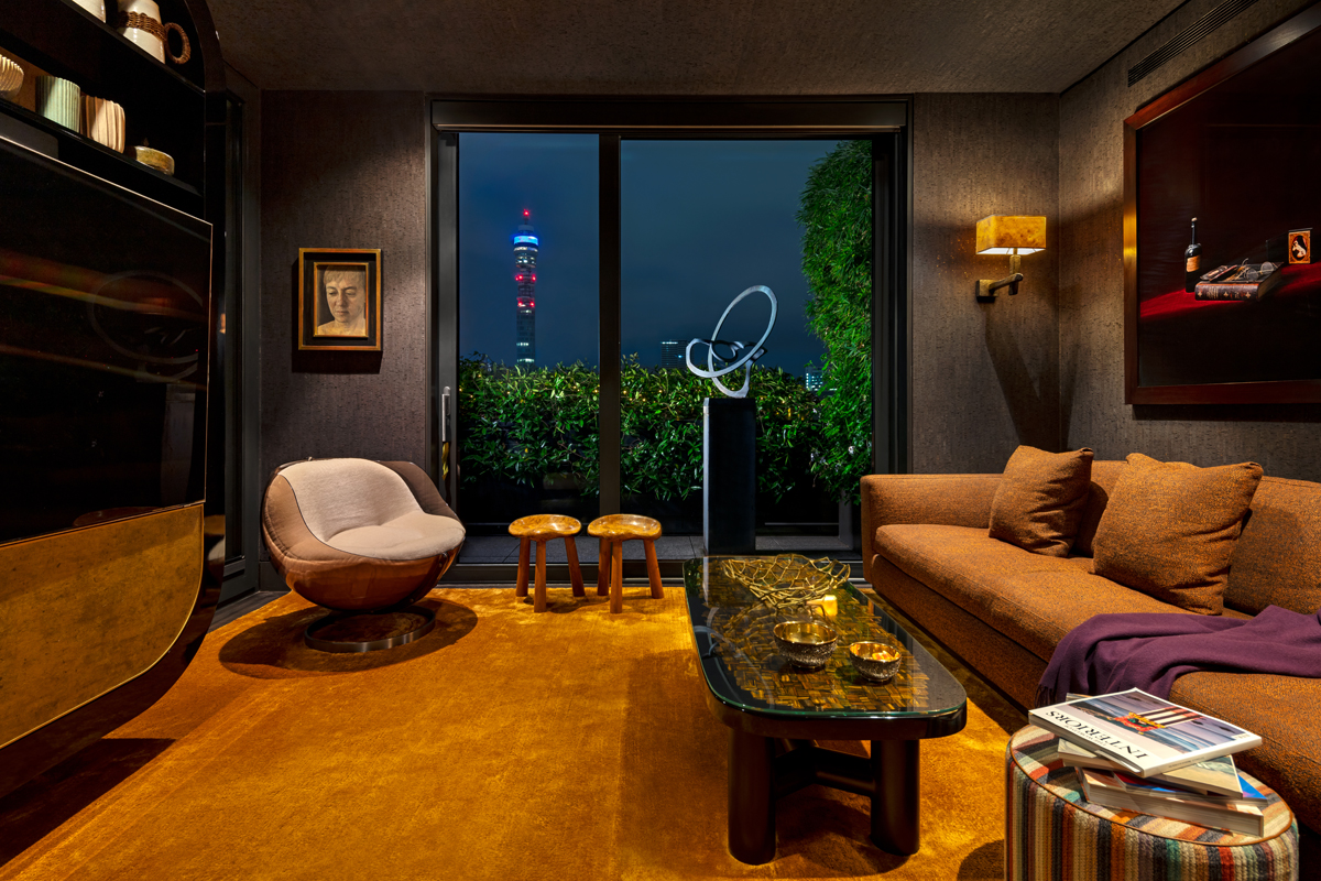 Floating above the streets of Soho and Fitzrovia, hidden from view but with the most spectacular views of the West End, is a penthouse, in fact two penthouses that were fused together to create a home for an American couple and their art collection, as well as pit stop for their extensive family.