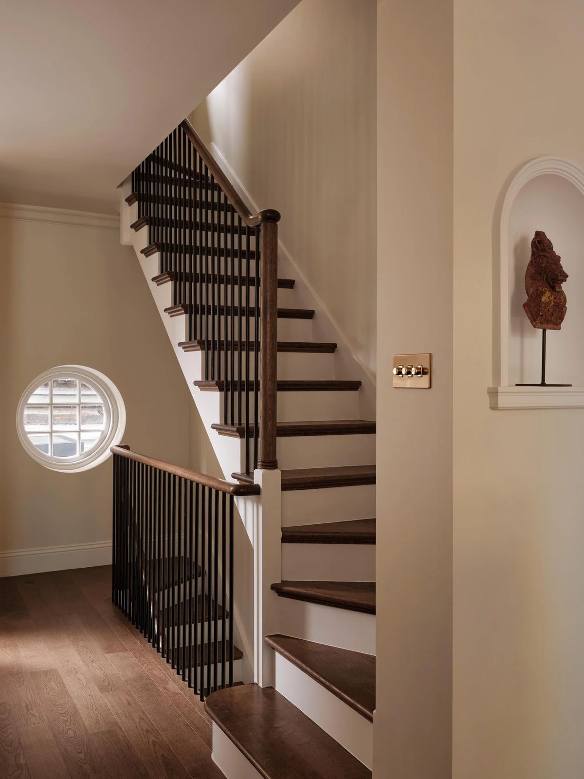 Nestled on the bustling market street of Portobello Road in central London, our family townhouse project began as a home in disrepair. When first approached by our clients, the property featured an unsafe spiral staircase, a bold blue-and-pink colour scheme throughout, and open-plan living on every floor. Our challenge was to transform it into a home that could grow and evolve with the family through every stage of life. Drawing inspiration from the character of the local neighbourhood, we sought to weave in subtle moments of discovery—like finding a hidden gem on Portobello Road—while ensuring the house remained a serene oasis, offering calm and comfort after a busy day at work or school.