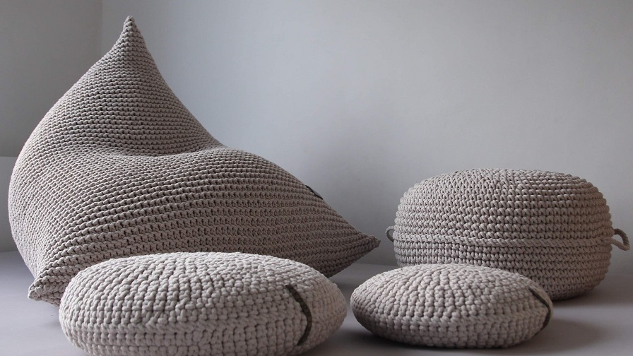 Functional, decorative, and perfect for cosy evenings - our pouffes are all of that and more. Knitted pouffes and crocheted ottomans are constructed from durable 100% cotton cord. Inside, a polystyrene bag holds beans to give it a nice, sturdy shape.