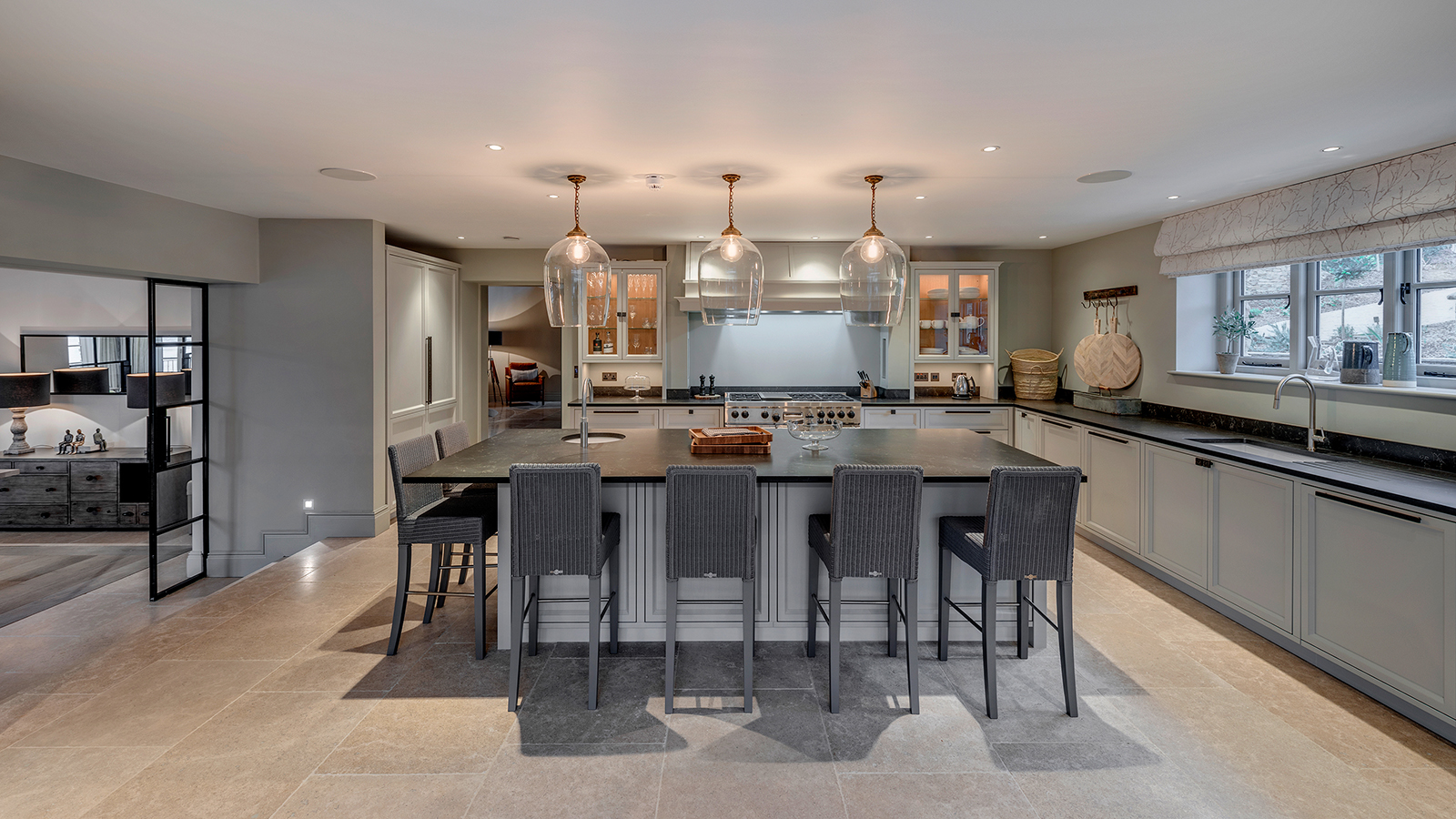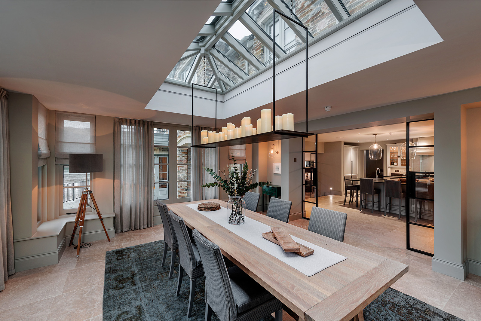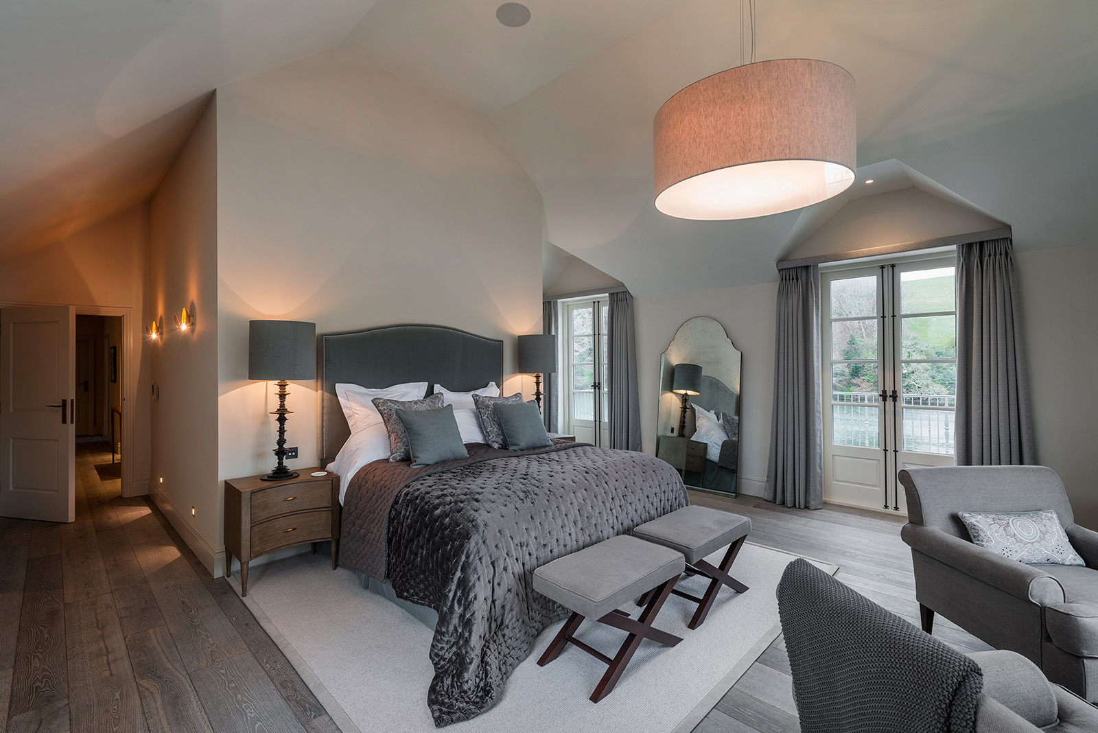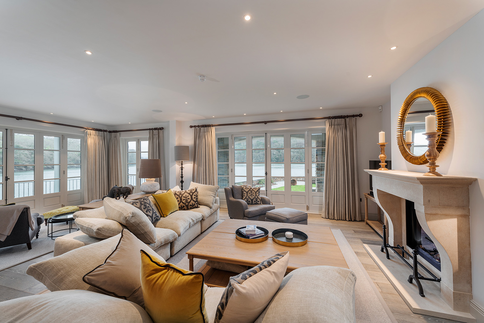 Involved from the very beginning of this exciting project, we had the pleasure to work alongside Rame Architects and Taurus Construction to create this fabulous seven bedroom river front property in South Devon. We worked closely with our client to achieve a warm & welcoming home, the challenge being to give a sense of cosiness to this substantial property. The classic design features of real stone and timber flooring, Crittal doors and soft muted paint tones along with the use of beautiful light fittings & sumptuous textured fabrics throughout worked to achieve this gorgeous interior.