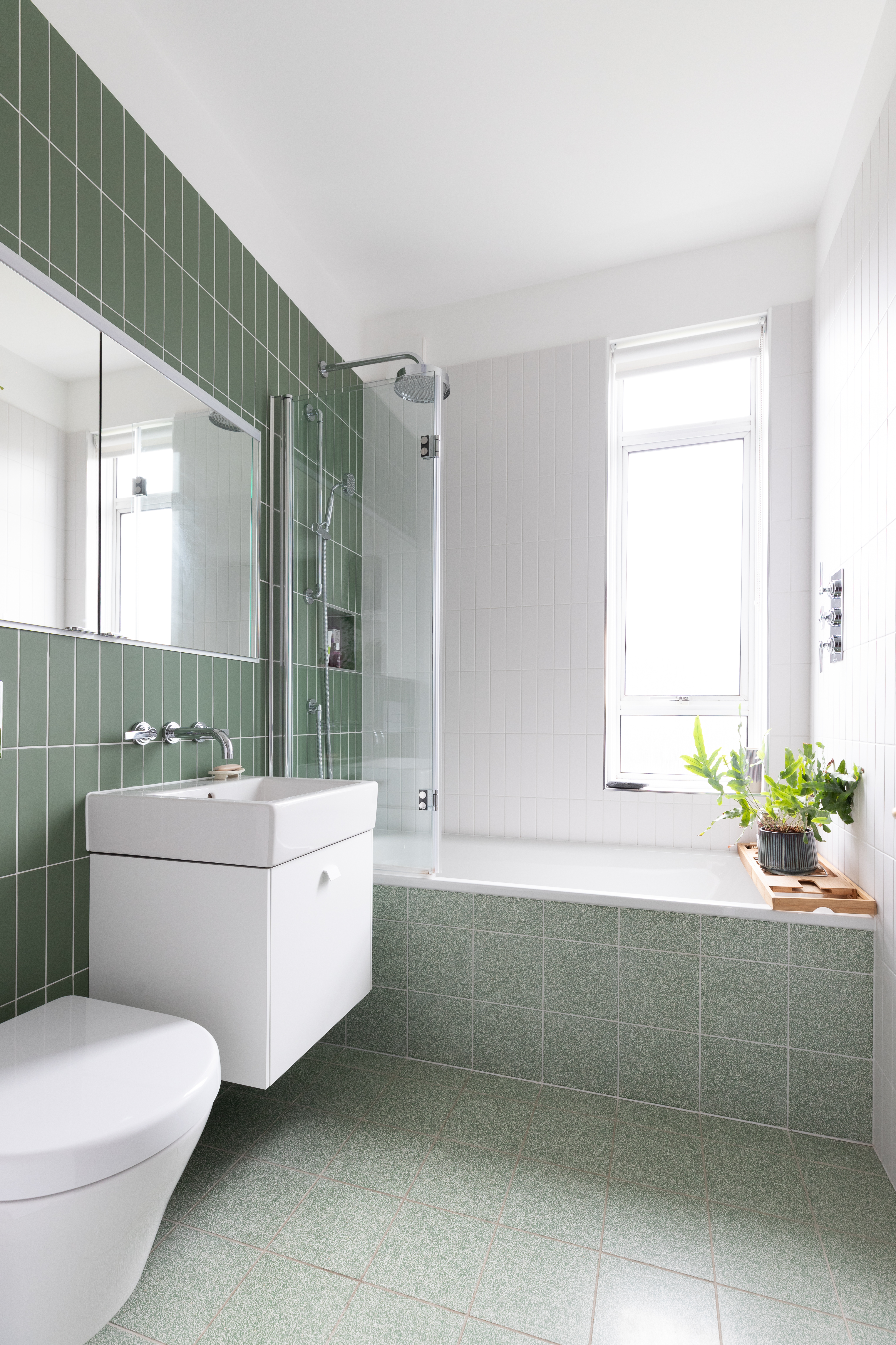Lighting was important, with layering of ambient, focal and mood lighting carefully considered throughout. A colour palette of muted greens, peach, off whites and earthy black, combined with brass fixtures throughout, adds a warm and contemporary touch to this traditional property.