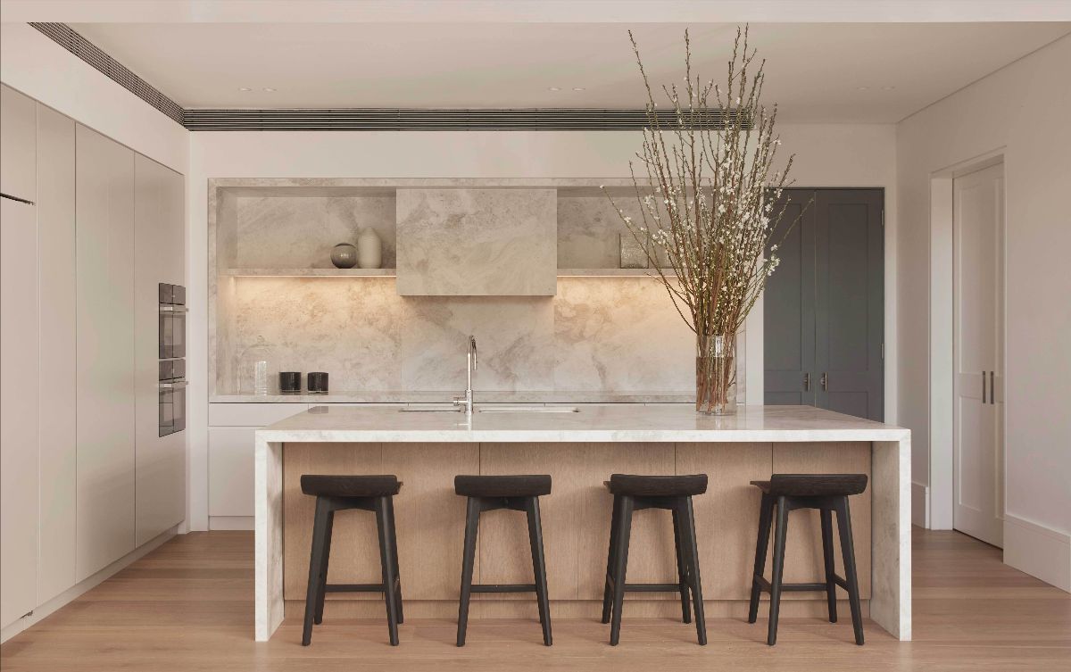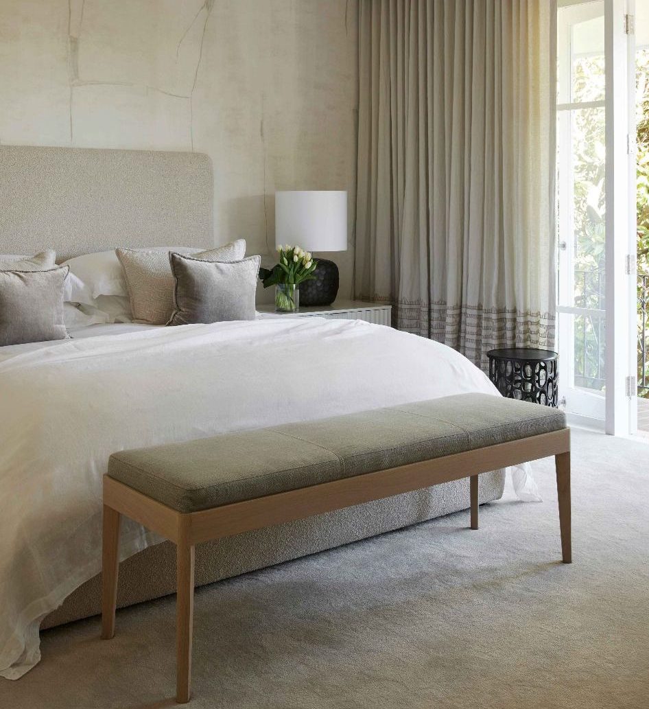 Jacket Curated’s showroom is a ‘living show home’ where designers and architects are invited to view pieces in person. Our Eve Table in solid oak natural resides in the open plan dining area, whilst the oak Ivor Bar Stools have been ebonised for a contrasting, elegant black finish at the kitchen island. Our Ivor Bench serves as an ottoman at the foot of the bed in the master bedroom in the thoughtfully curated residence in Rose Bay.