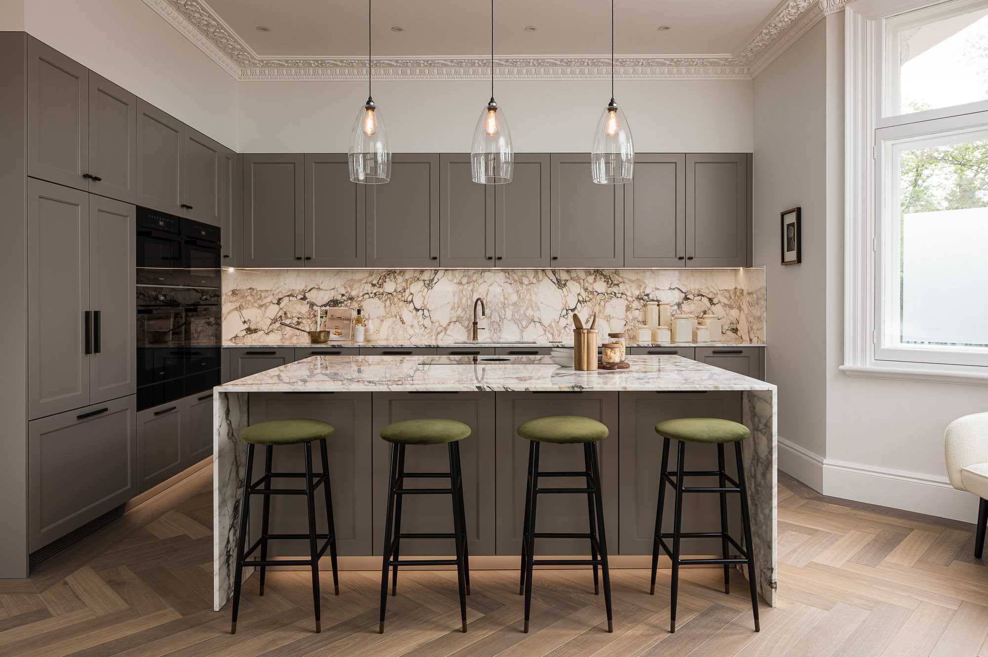 Chosen for its timeless and functional appeal, Havwoods flooring was installed in the kitchen, dining room and across the first floor reception rooms.