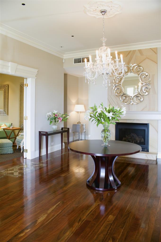 Fresh colours and florals feature amongst the traditional rich timbers, vintage furniture and lighting, and ornamental plaster work. Balancing the light and dark features of the home provides a wonderful depth of character for this classically beautiful building and creates a stunning backdrop to relax in this slice of Queensland paradise.