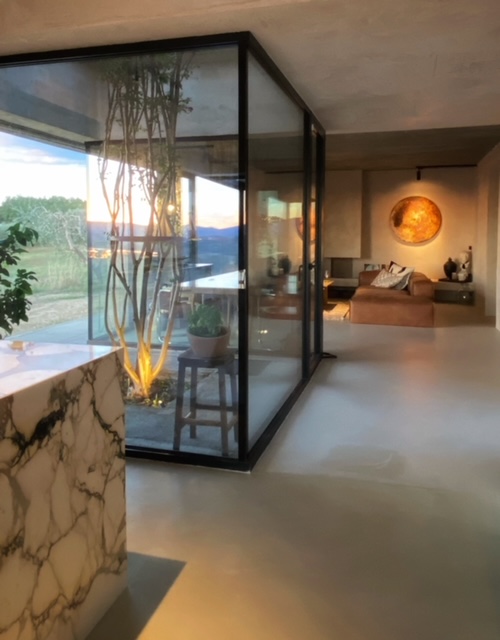 A beautiful spot overlooking Lago di Chuisi on the Tuscan Umbrian borders, where my clients realised a sympathetic pared back farmhouse with a hidden contemporary design aesthetic using natural finishes throughout.