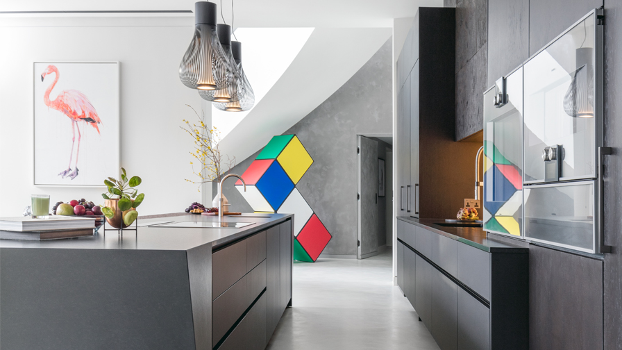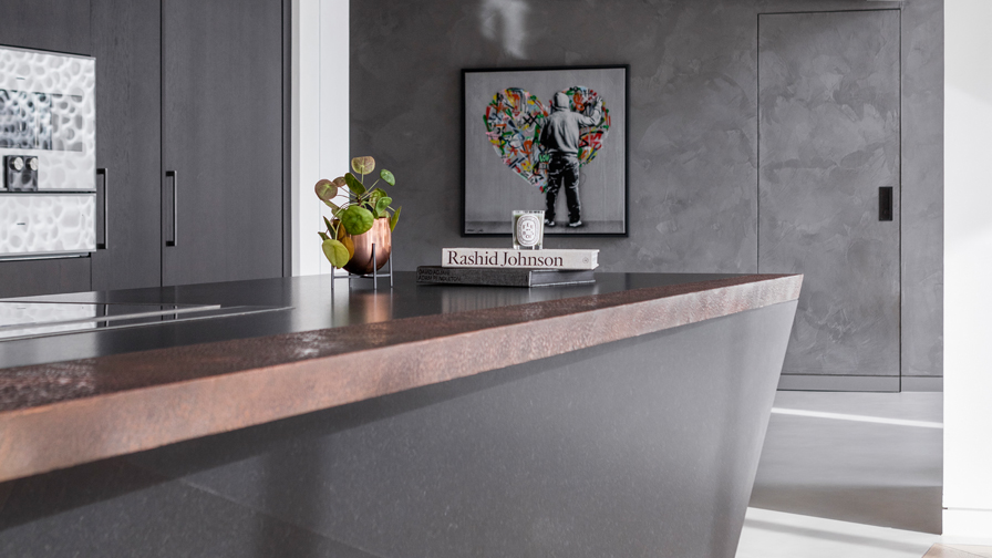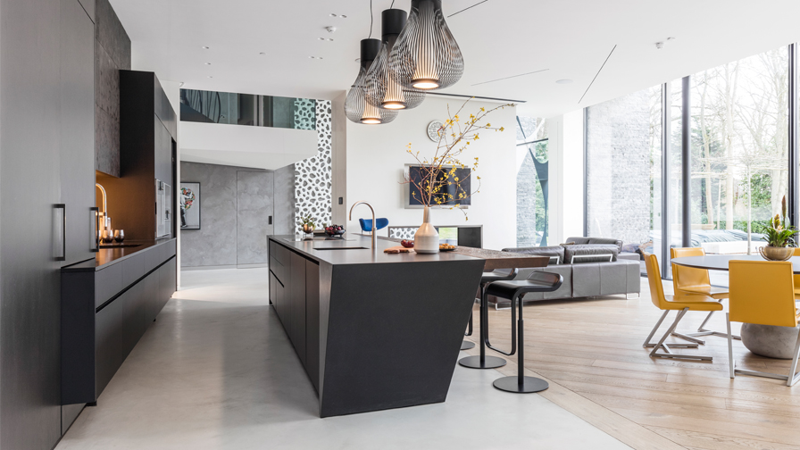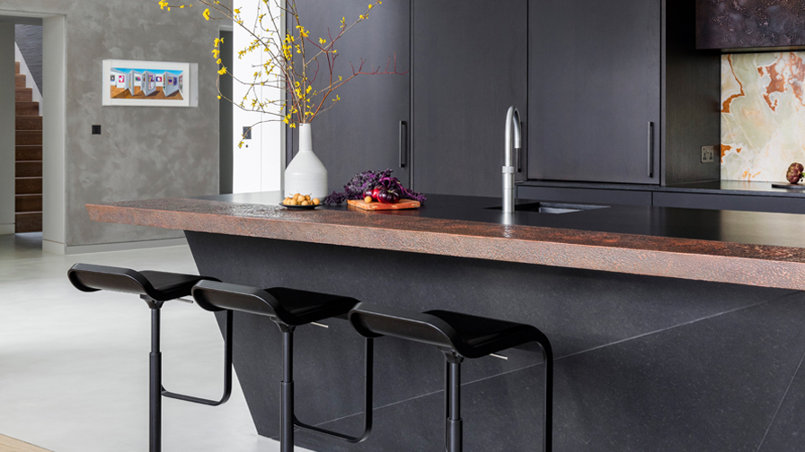 The Monolith kitchen was shortlisted in the IDA and SBID Awards 2022. Powerful angles and a dramatic material palette give this kitchen the presence that a unique home demands. Extended high ceilings, inspired interior architecture and tactile materials, result in an open-plan kitchen environment akin to a modern art exhibition.