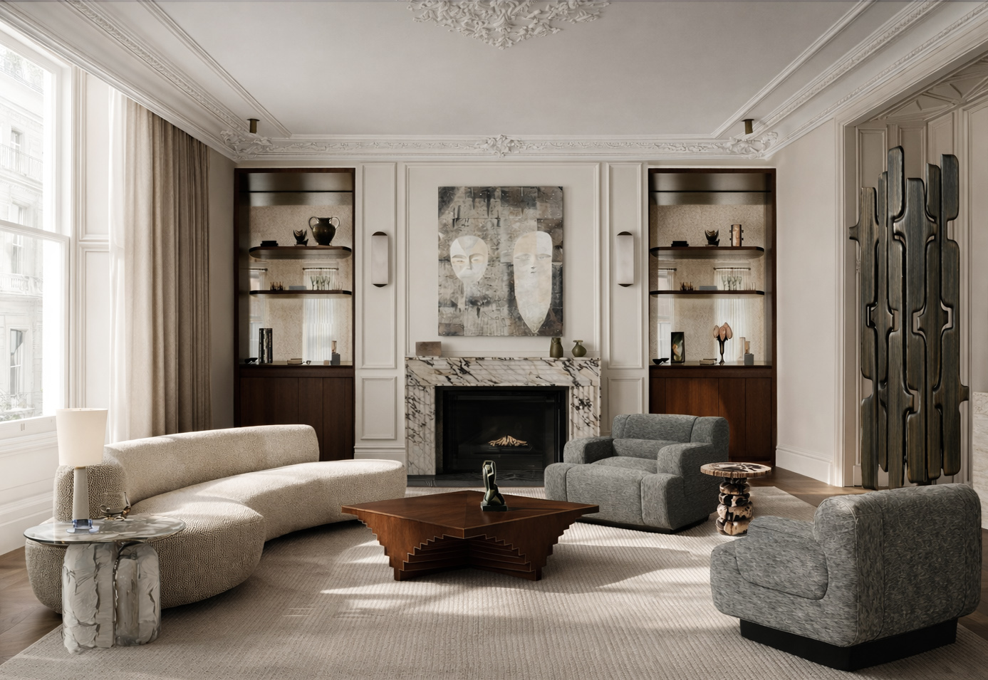Designed with their lifestyle in mind, through visual research and conceptual thinking, RIA create spaces with a refined aesthetic, strong sense of place and a unique concept. Sourcing and designing bespoke pieces from the extensive network of craftmen cultivated over the years, layering art and architecture: are key elements of the design process, creating a balance between classical and contemporary elements.