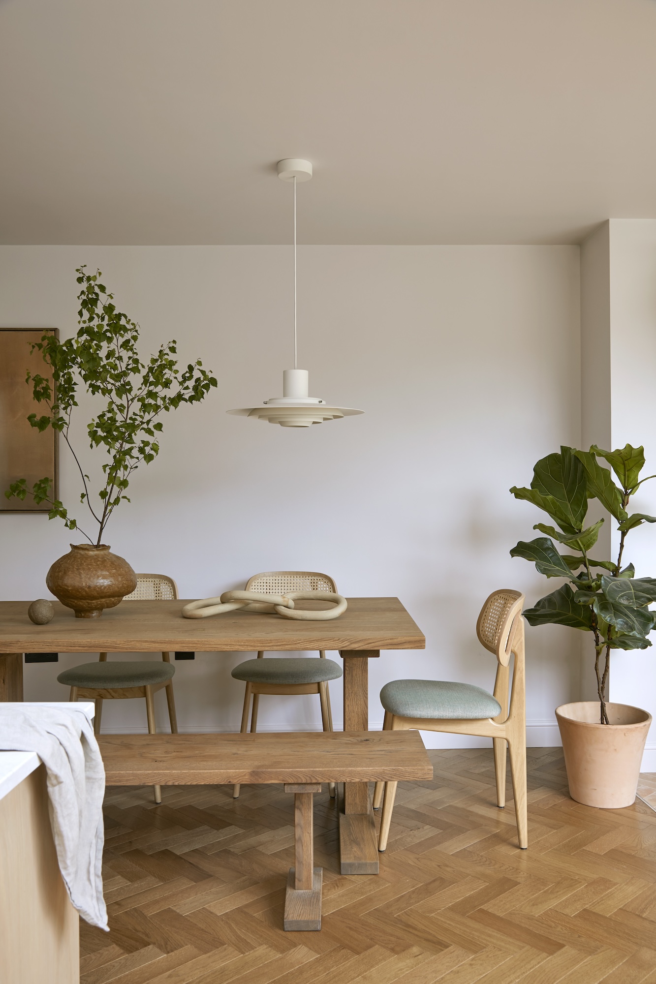 Flowing from kitchen to courtyard, the layout supports both quiet everyday moments and weekend gatherings. A soft, earthy palette and tactile finishes offer a grounded, restorative backdrop to busy London life. Designed with longevity and well-being in mind, every detail reflects a commitment to creating a home that feels deeply connected—to nature and to the people who live in it.