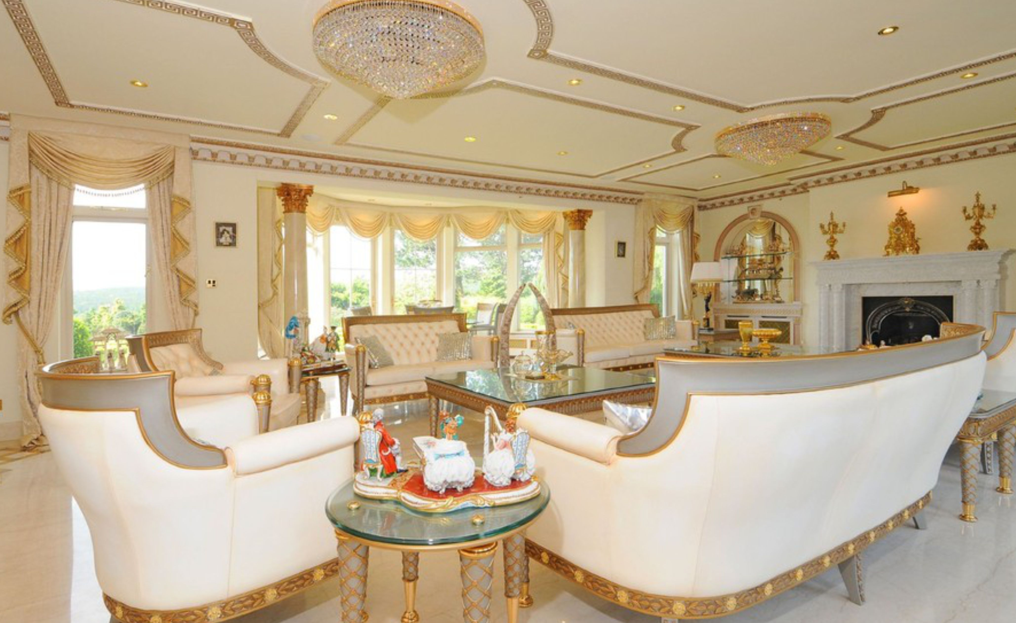 The inlaid marble floors were custom made in Italy and transported to the UK