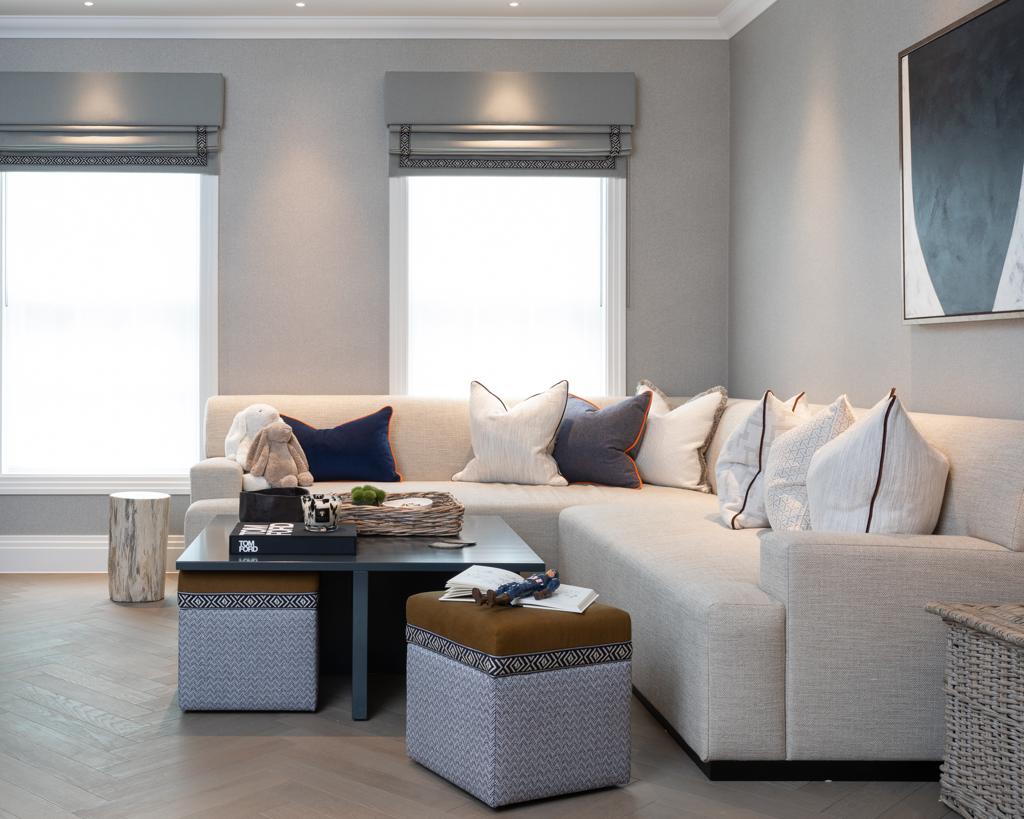 A full refurbishment of this spectacular 9,700 sq ft family home. Including a library, cinema and 5 bedroom suites for this Interior Design studio