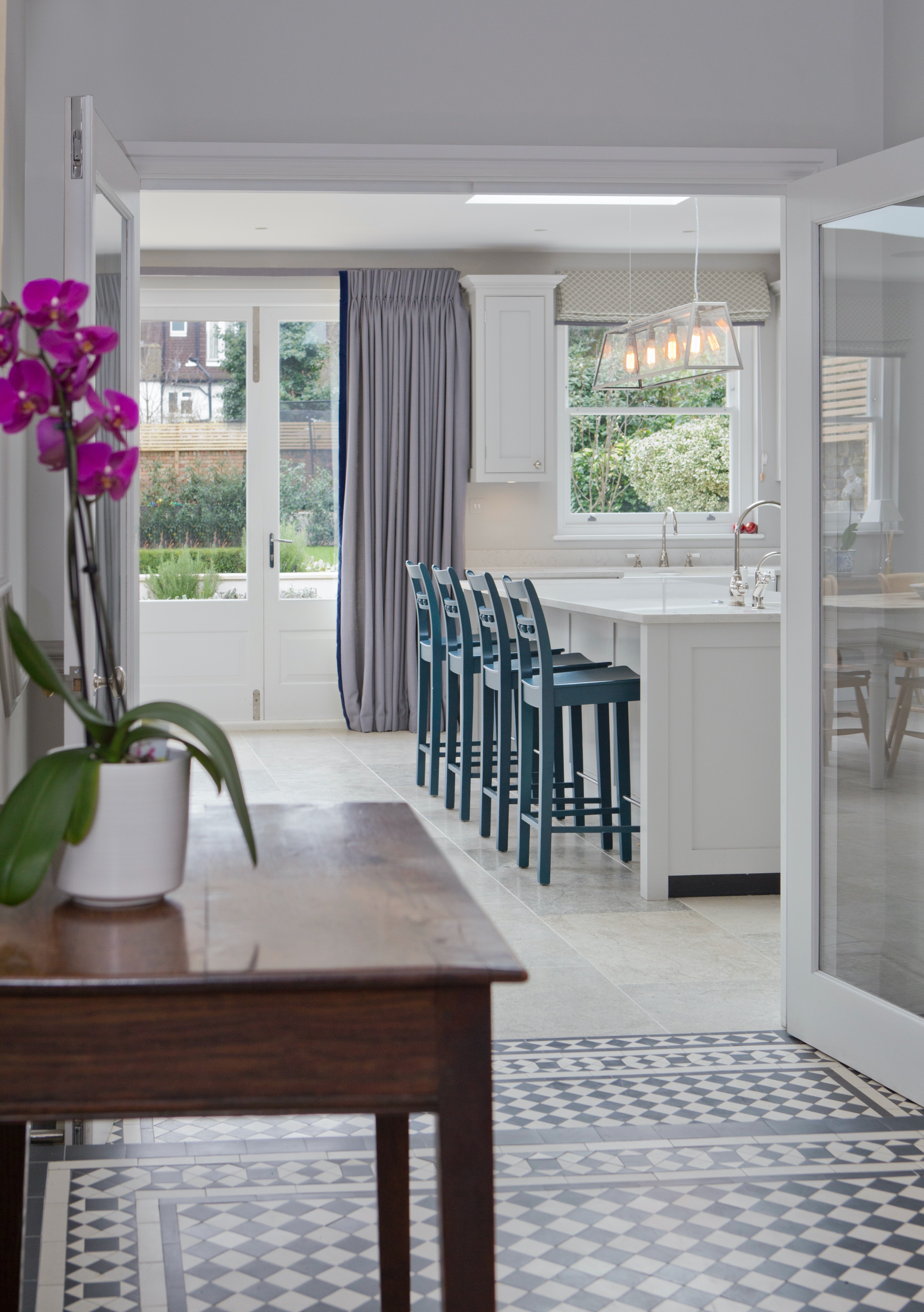 This was our third project with clients who had moved to an incredible house, built in Queen Victoria's Great Exhibition. Despite the abundance of amazing period detail, we designed a huge false chimney breast which accommodated a large Aga and provided strong symmetry to such a big space. Very happy mememories deliberating over the perfect French grey for this kitchen!