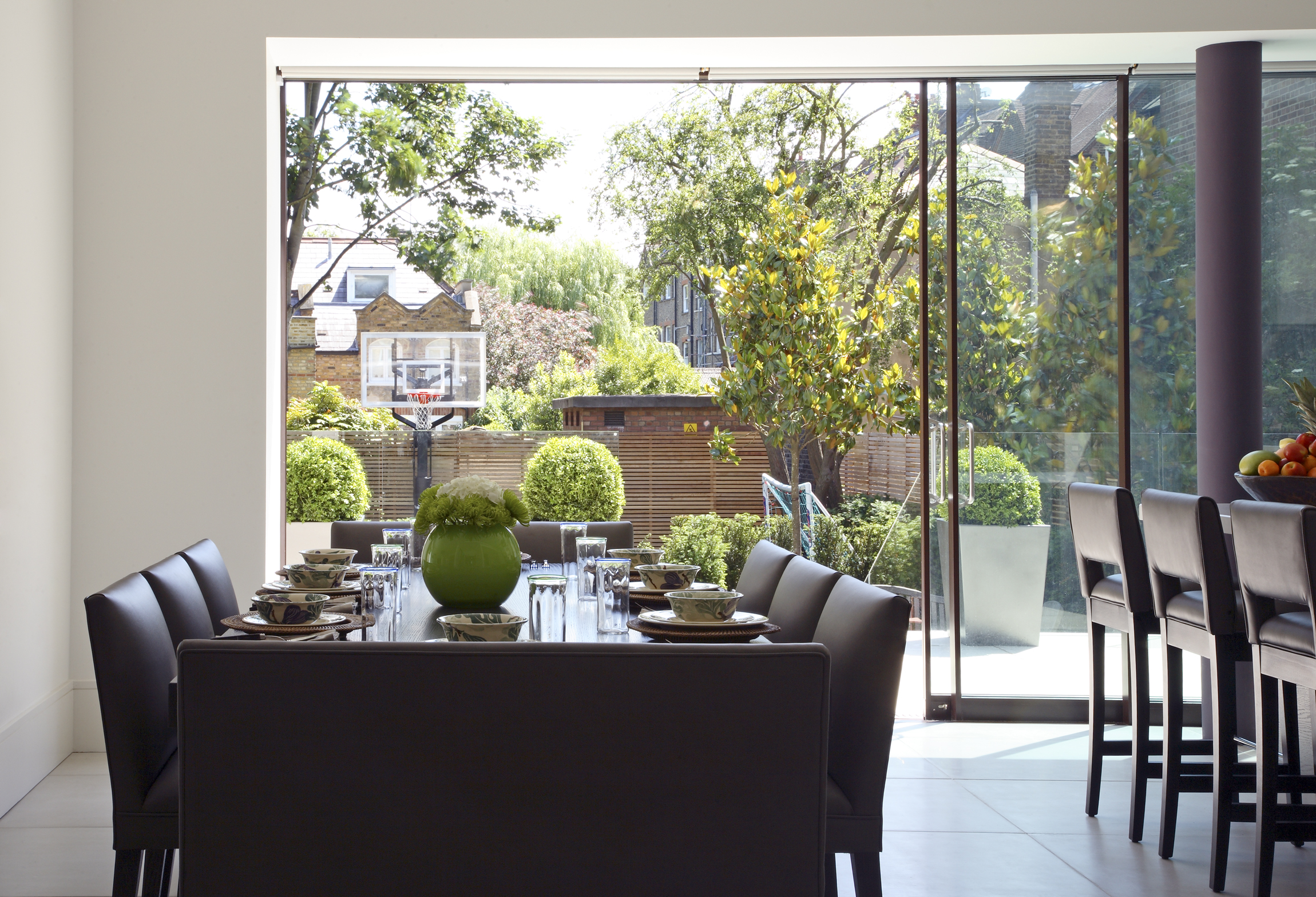 Large family home over 5 floors with newly formed lower ground floor providing a home gym and playroom. A much loved project standing the test of time, quality finishes including smoked oak timber flooring, marble bathrooms, concrete large slab flooring in kitchen, bespoke joinery and kitchen. Funriture sourcing to compliment client's exisiting pieces blending old and new