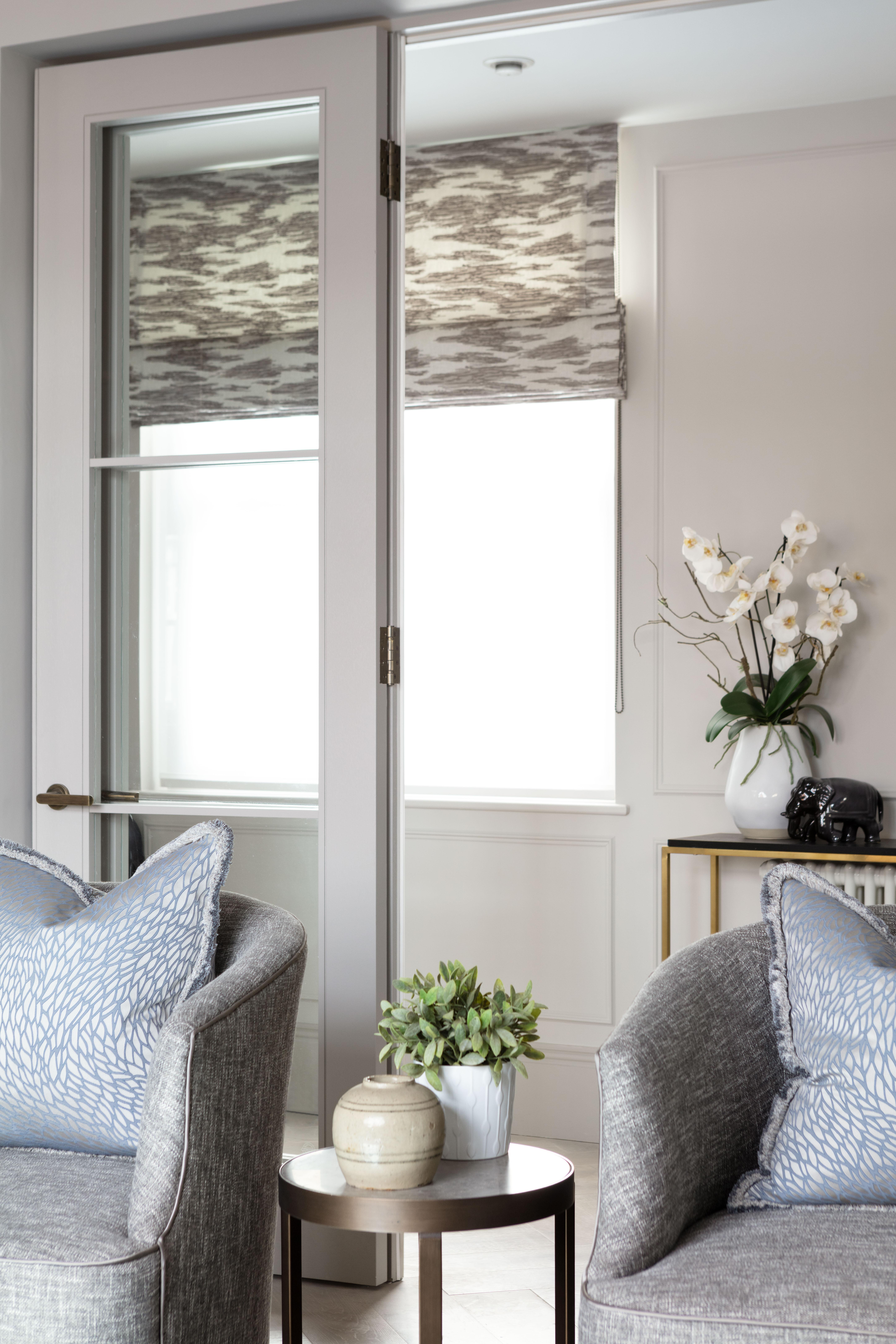 Full turnkey renovation and refurbishment of a 4th floor apartment in this prestigious Manion Block opposite Kensington, Olympia. Planning permission was sought and granted to include a full loft conversion, which allowed for provision of 2 spacious en-suite bedrooms over 750 sq ft of converted space. JMID managed the renovation of all works, and completed the interior layout and design throughout. The client brief for a elegant, designer led ambience, balanced with the desire for comfortable, family friendly living was achieved through the creation of light, open-plan living spaces, removal of a number of internal walls, tall doorways and bespoke built in joinery and cabinetry throughout. Combined with soft, ambient lighting and harmonious, complementary layered furnishings ... an inviting, warm and most definitely bespoke ambience was achieved for our clients.