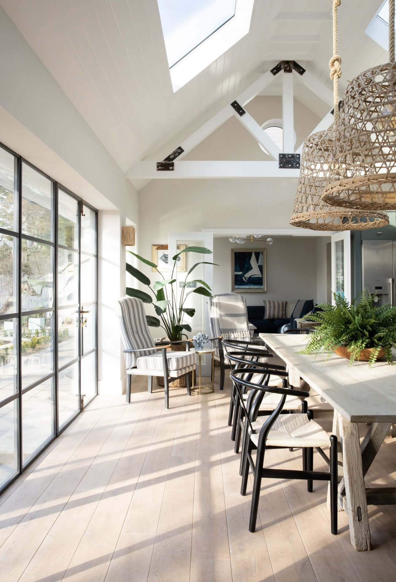 Emma completely remodelled this beach house on the beautiful West Sussex coast. The house floorpan was completely redesigned to give the house maximum light and an open plan flow. The furniture and decor schemes were intricately planned to create perfect interiors lending themselves to an airy Hamptons inspired family home.