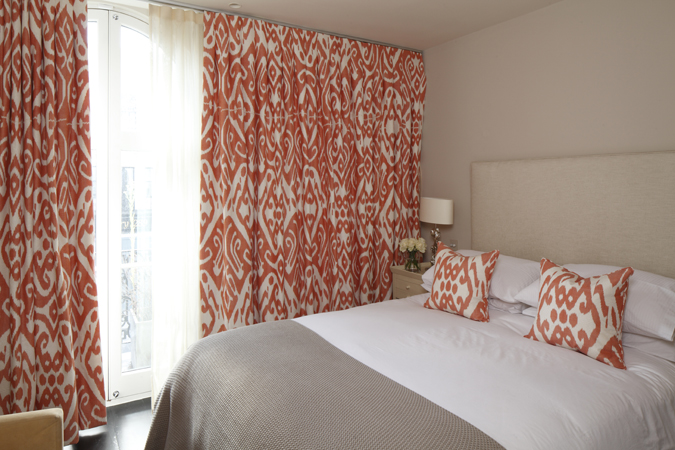 I was commissioned to transform the living space of an apartment in the heart of London’s fashionable Notting Hill. The 1900 sq foot lateral space required a modern and eclectic feel for open plan living and entertaining. The client loves ethnic fabrics, which led to us finding an original Ikat fabric shipped all the way from Uzbekistan, resulting in a truly unique interior.