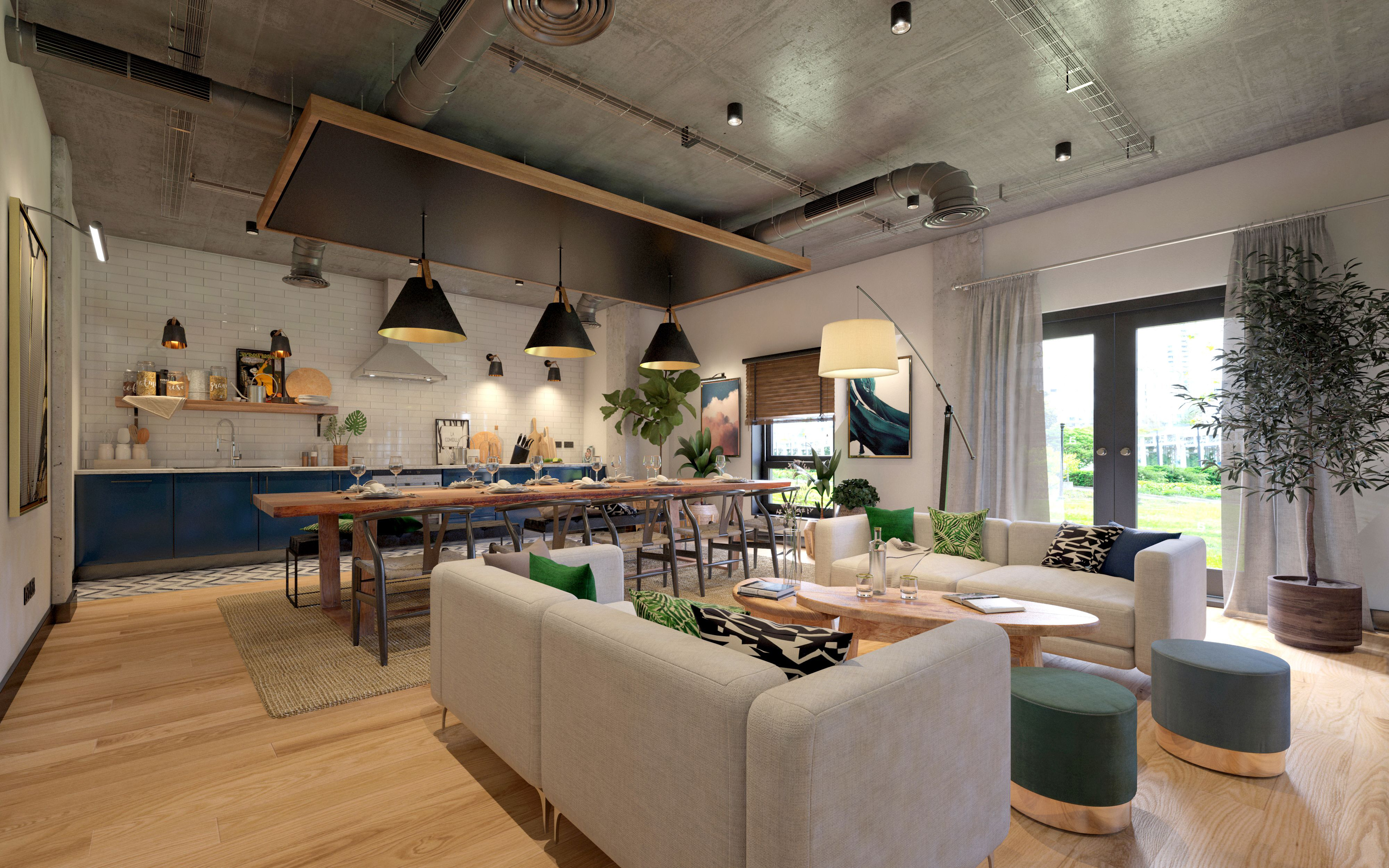 Our interior designers provided concepts for the ground floor communal areas providing a spatial plan, high-quality CGIs and photo-realistic renders for a gym, gaming room, cinema, working area, living area and dining room. Our intention was to create a home-away-from-home for the students providing welcoming, social and comfortable spaces. Student wellbeing is a key driver offering spaces out of their bedrooms to socialise, a meeting room for group work, a quiet library zone and a space for quiet working. We are also providing drawings for lighting, electrics, joinery, furniture specification and procurement
