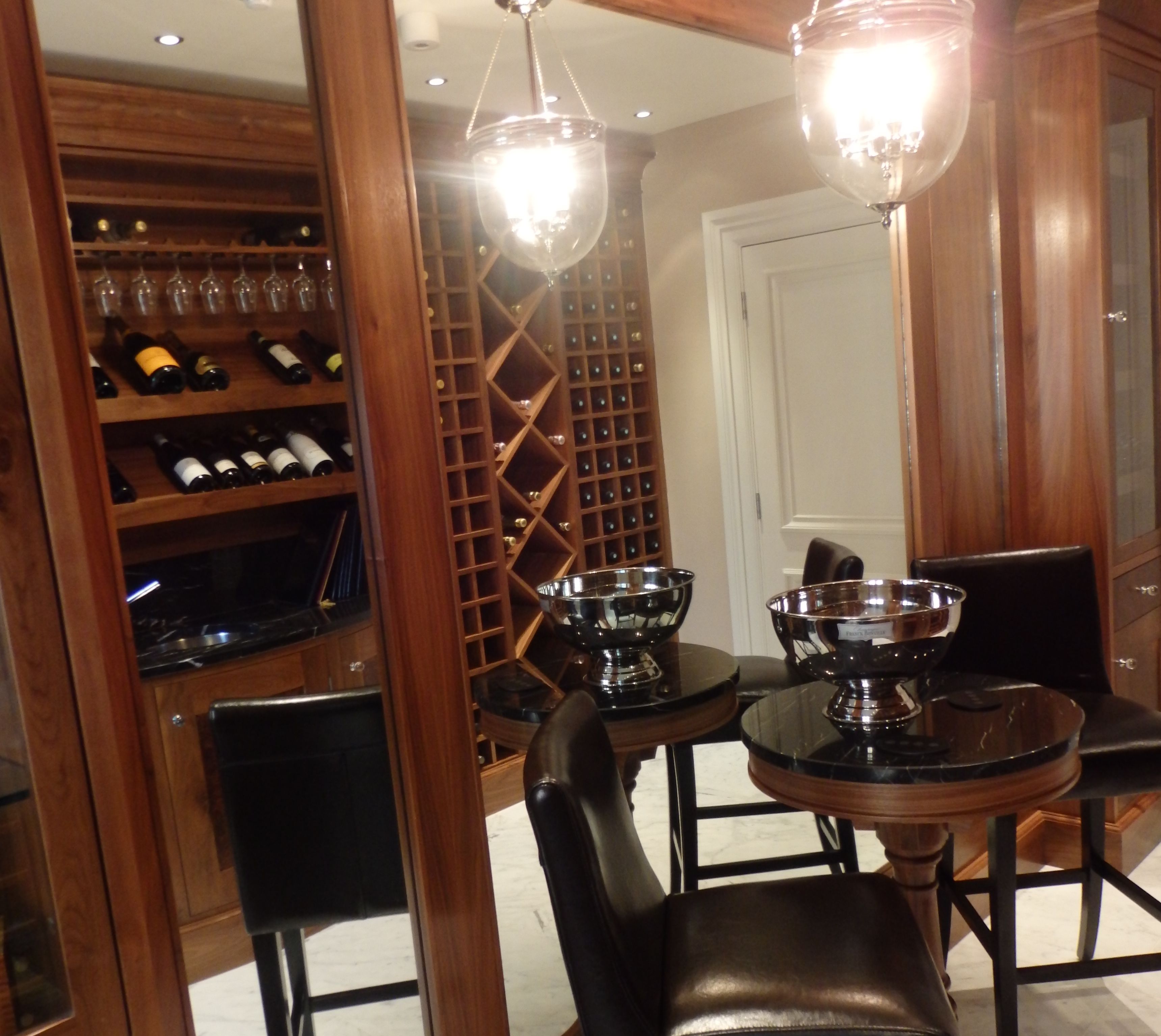 The table provided a tasting area and the mirror back panels created the illusion of space in what was a relatively small room.
