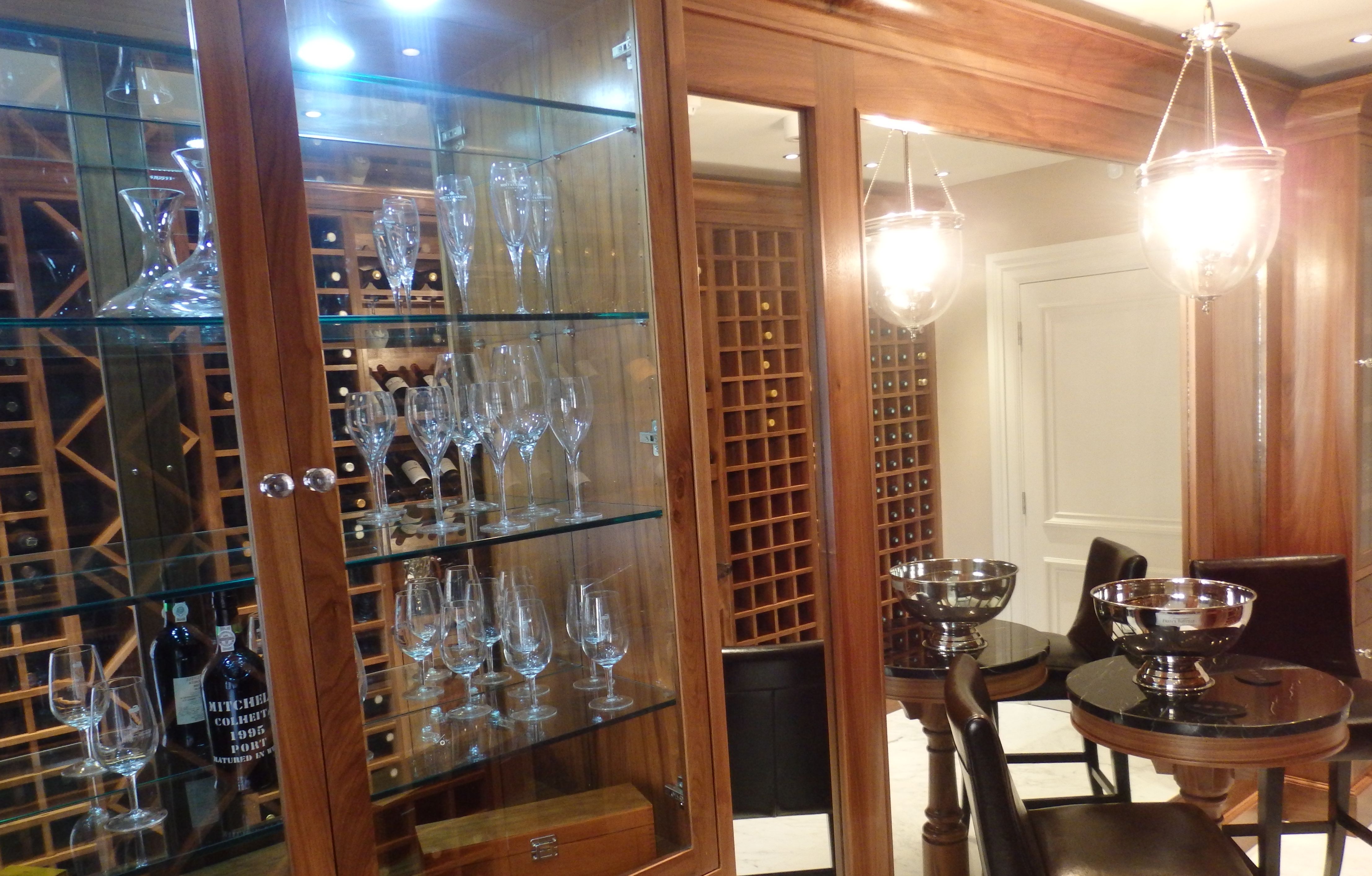 As well as the open wine shelves glass wine fridges were fitted to temperature control some parts of the collection and glass cabinets were added to house a selection of glasses.