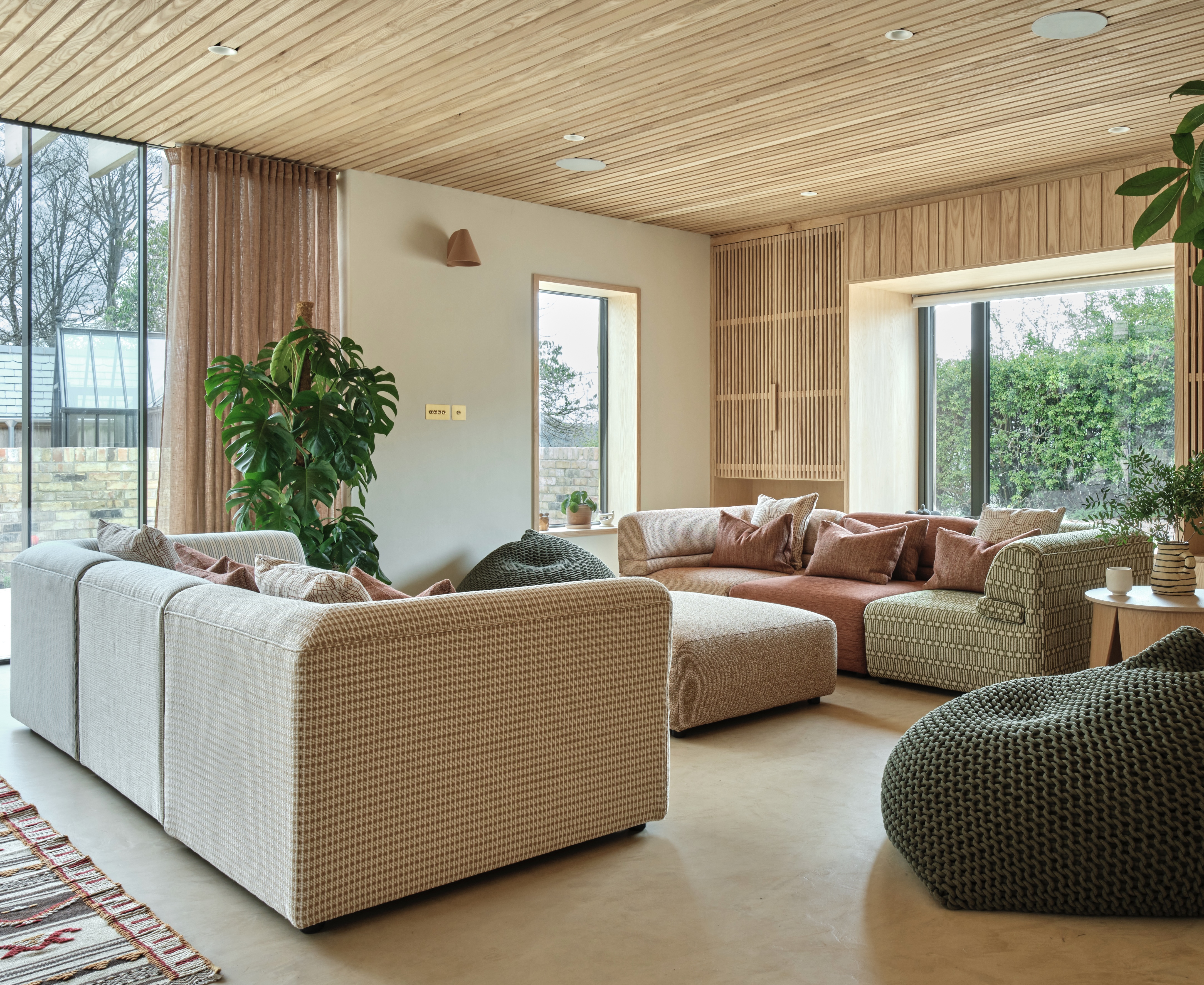 Now, tucked away in the wild and wonderful Dorset countryside, this dreamy little cottage has been reimagined as a serene yoga retreat with a twist. Our brief? Create a space that invites deep breaths, long stretches, and luxurious sleepovers. We designed a light-filled studio for sun salutations by day and added three guest bedrooms, each with its own en-suite, for hosting friends, family, or fellow yogis in comfort and style. Natural textures, layered linens, and soft, earthy tones flow throughout, with the occasional playful pop (because we can’t help ourselves).